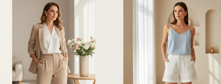 Os conjuntos sociais femininos da Anellimn são ideais para ambientes formais, reuniões de negócios e eventos sofisticados. Peças bem cortadas, tecidos estruturados e modelagens modernas que garantem um visual imponente e refinado.