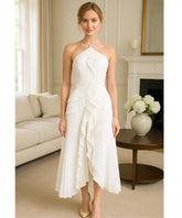 Vestido de Festa Midi Frente Única Plissado Elegante Casamento | Classic - Branco