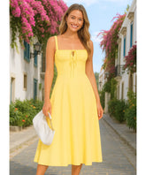 Vestido Midi com Corset para Casamento e Formatura Elegante | Bia - Amarelo