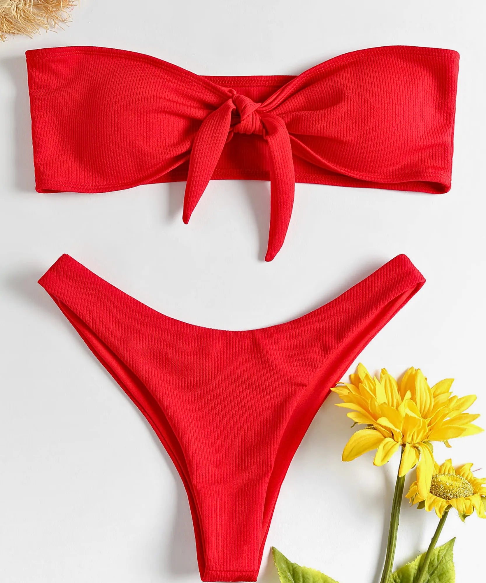 O laço central é um detalhe delicado que dá um toque extra de feminilidade ao look.