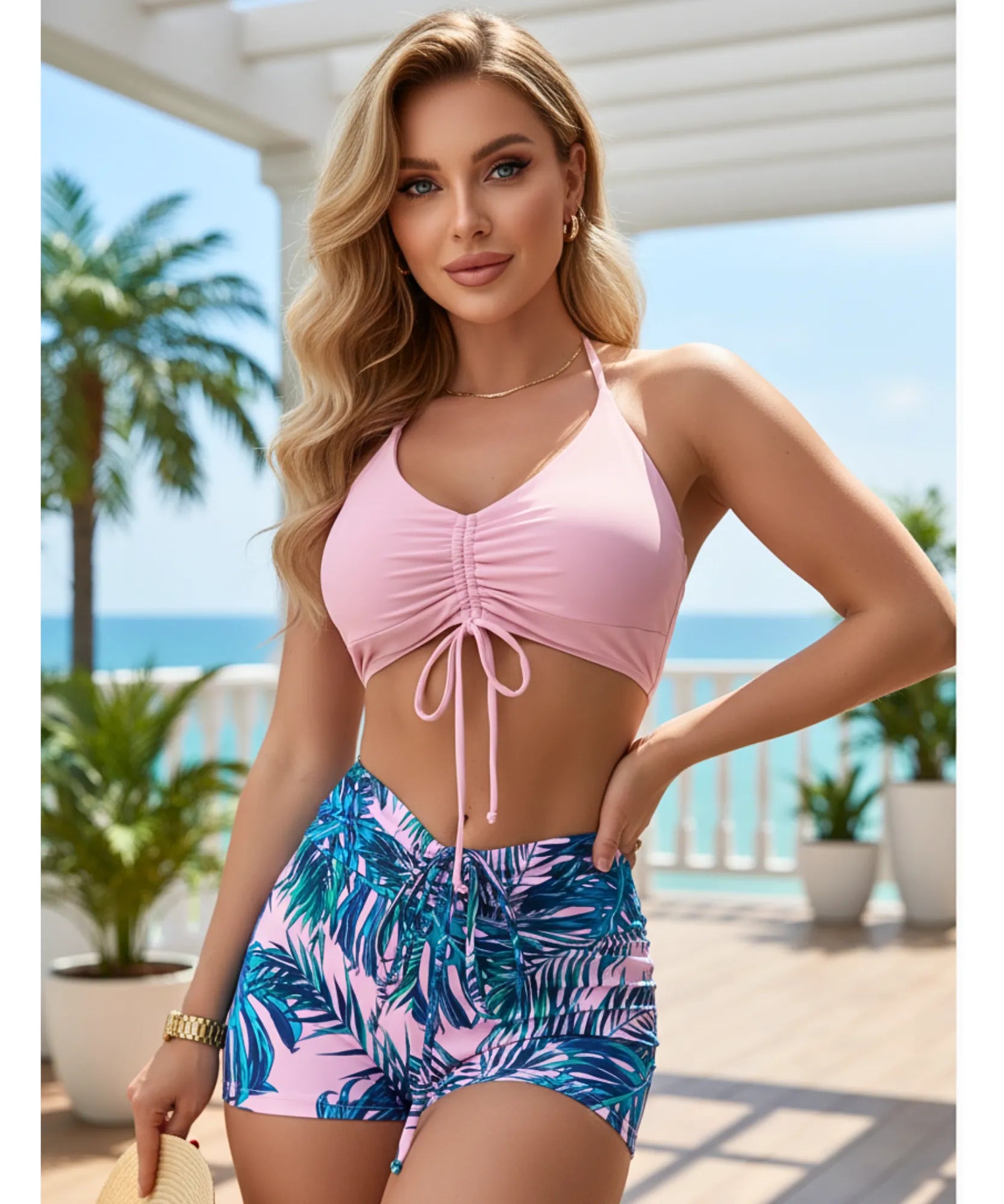 A cintura alta cria efeito visual que define a região abdominal, enquanto o shortinho proporciona cobertura confortável e elegante.
