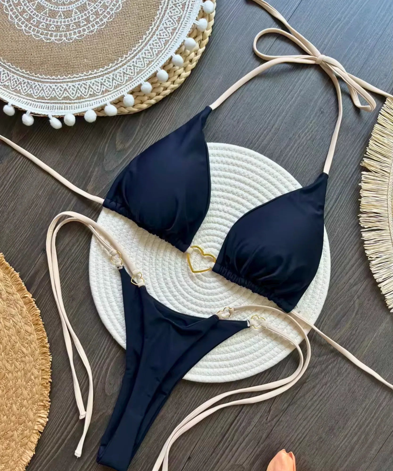 Este biquini fio dental triangulo combina ousadia com elegância contemporânea.