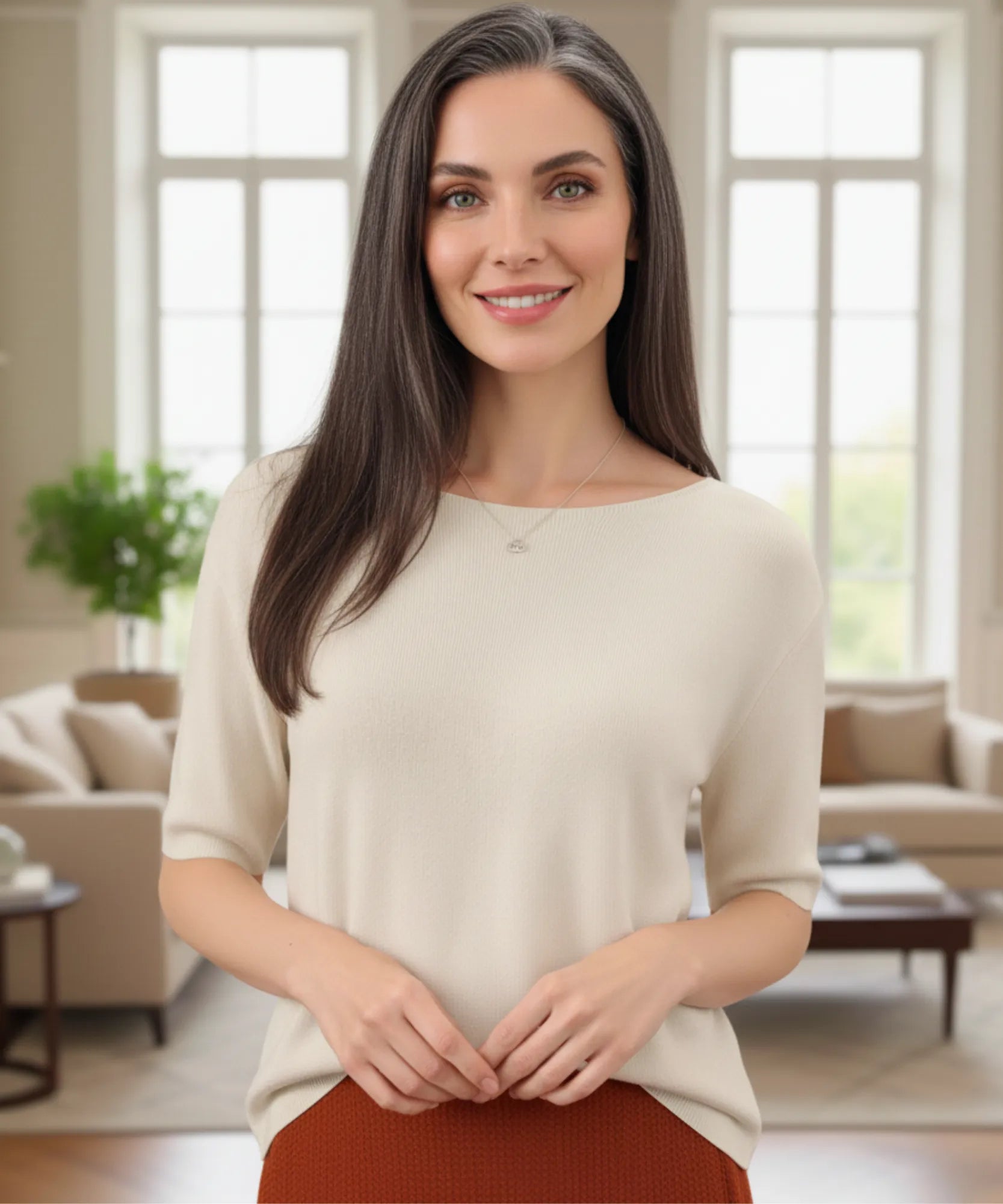 Essa blusa transita com naturalidade entre ambientes formais e casuais.