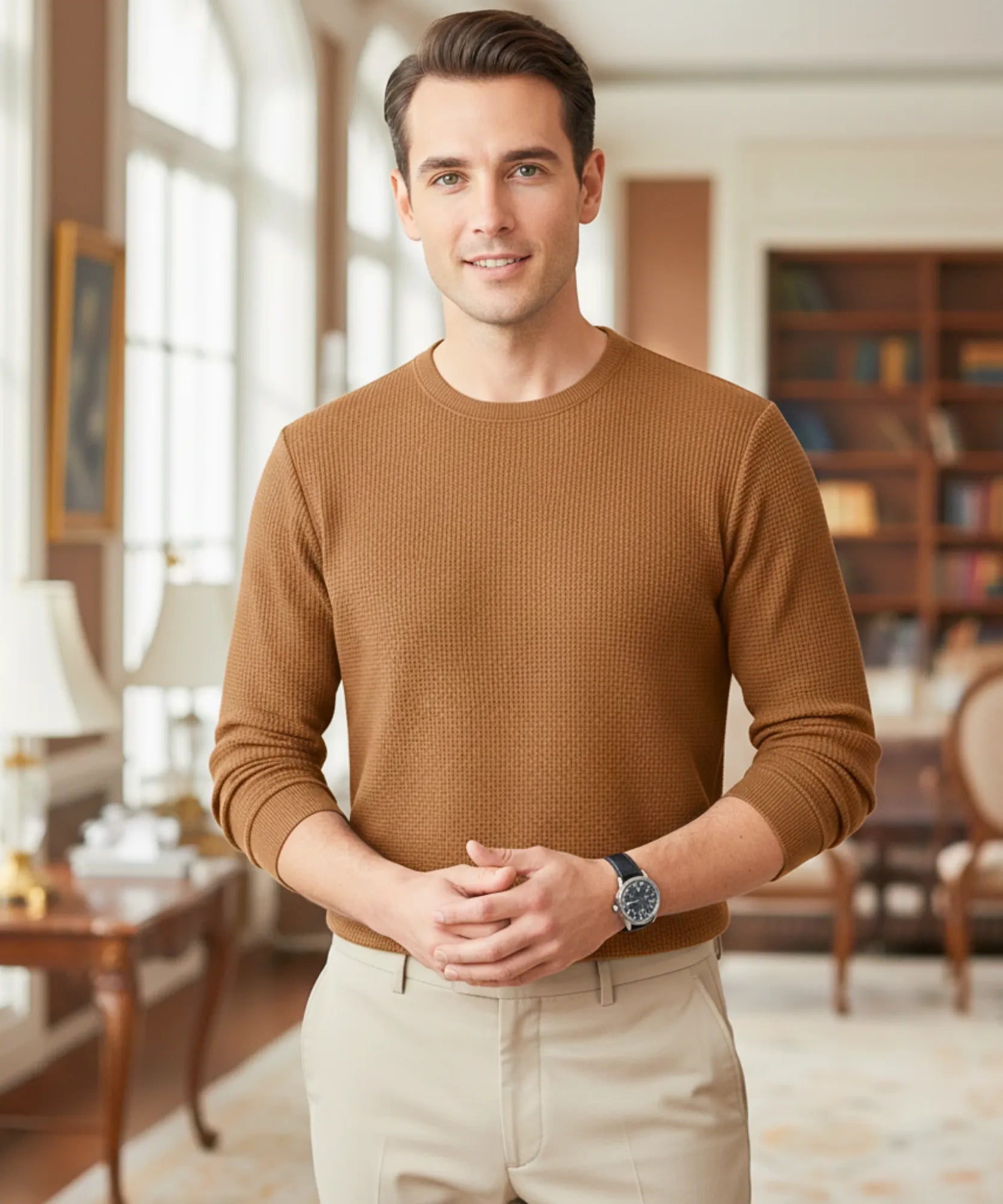 Conforto Estiloso com Malha Waffle Masculina