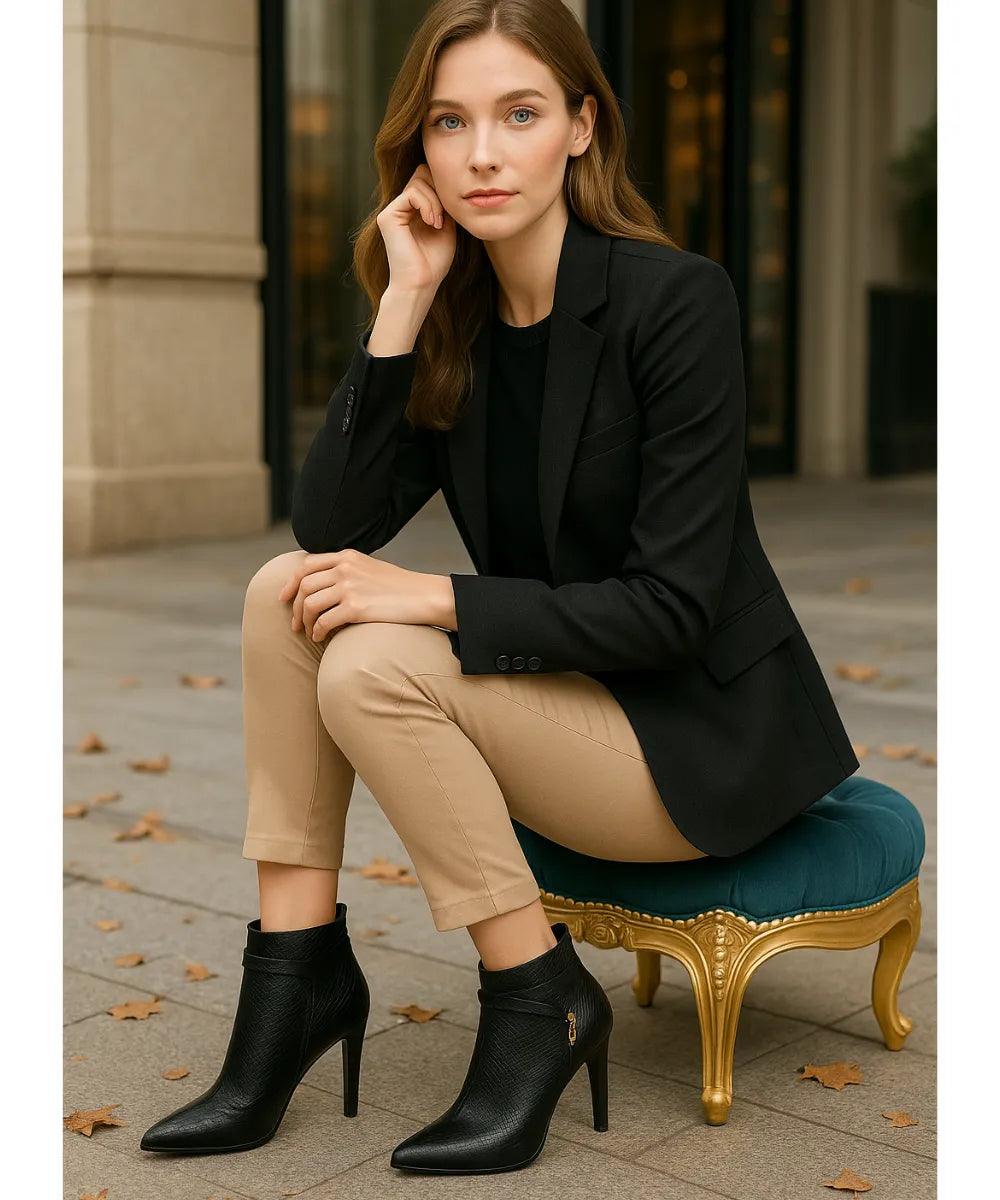 Essa bota feminina salto fino bico fino elegante transforma qualquer visual com seu acabamento sofisticado, caimento impecável e detalhes de impacto.