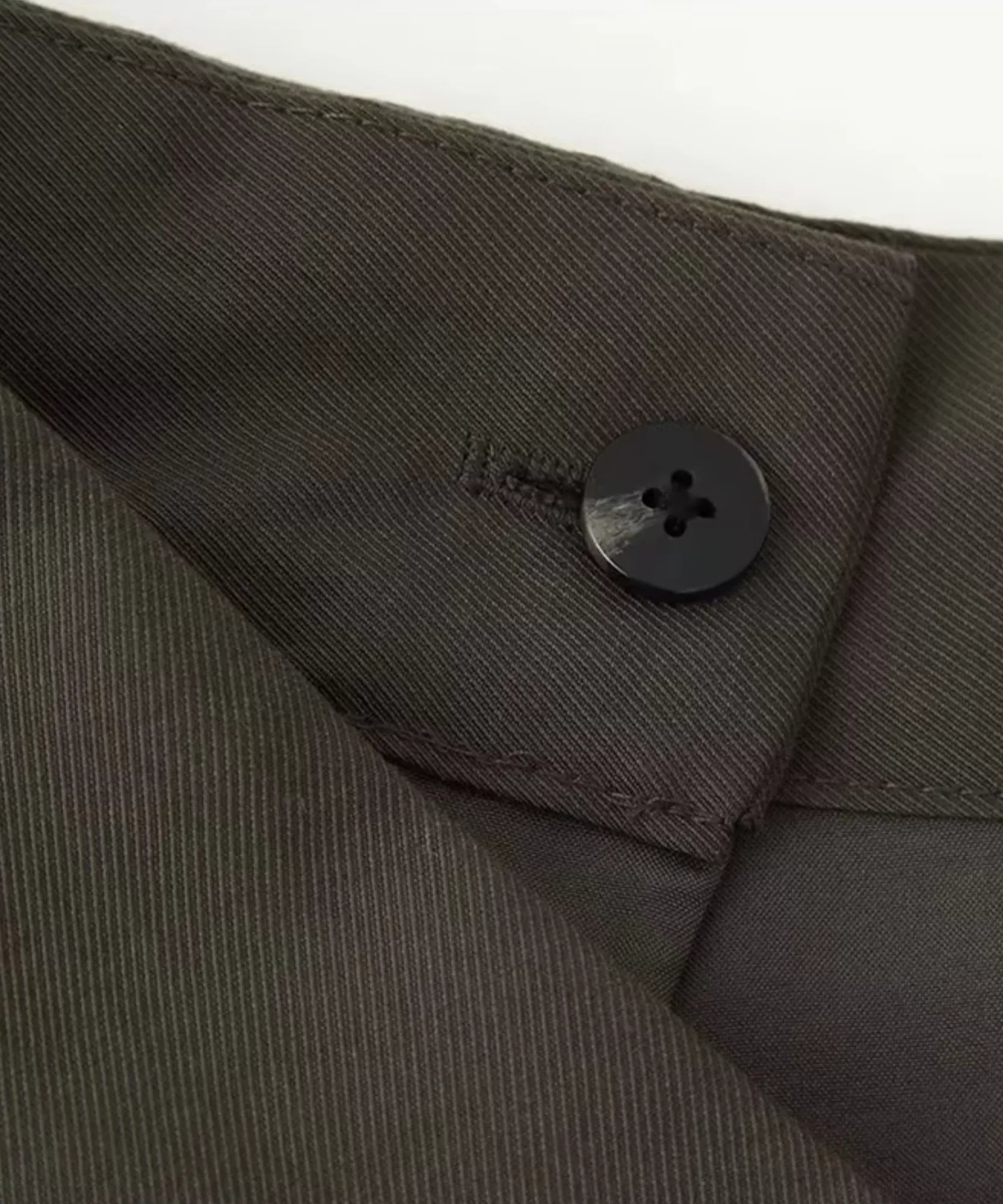 O tecido alfaiataria selecionado para esta calça feminina combina densidade adequada com respirabilidade natural, evitando aquela sensação abafada comum em tecidos sintéticos de menor qualidade.