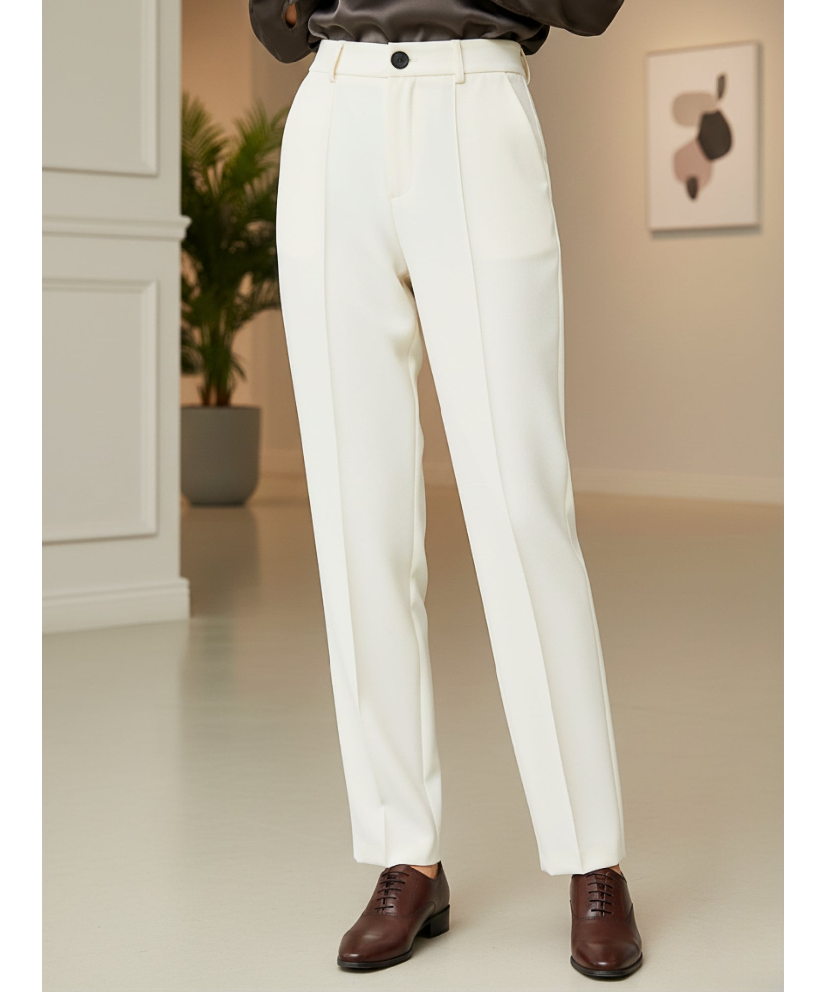 Aqui mora a mágica real dessa calça de alfaiataria feminina.
