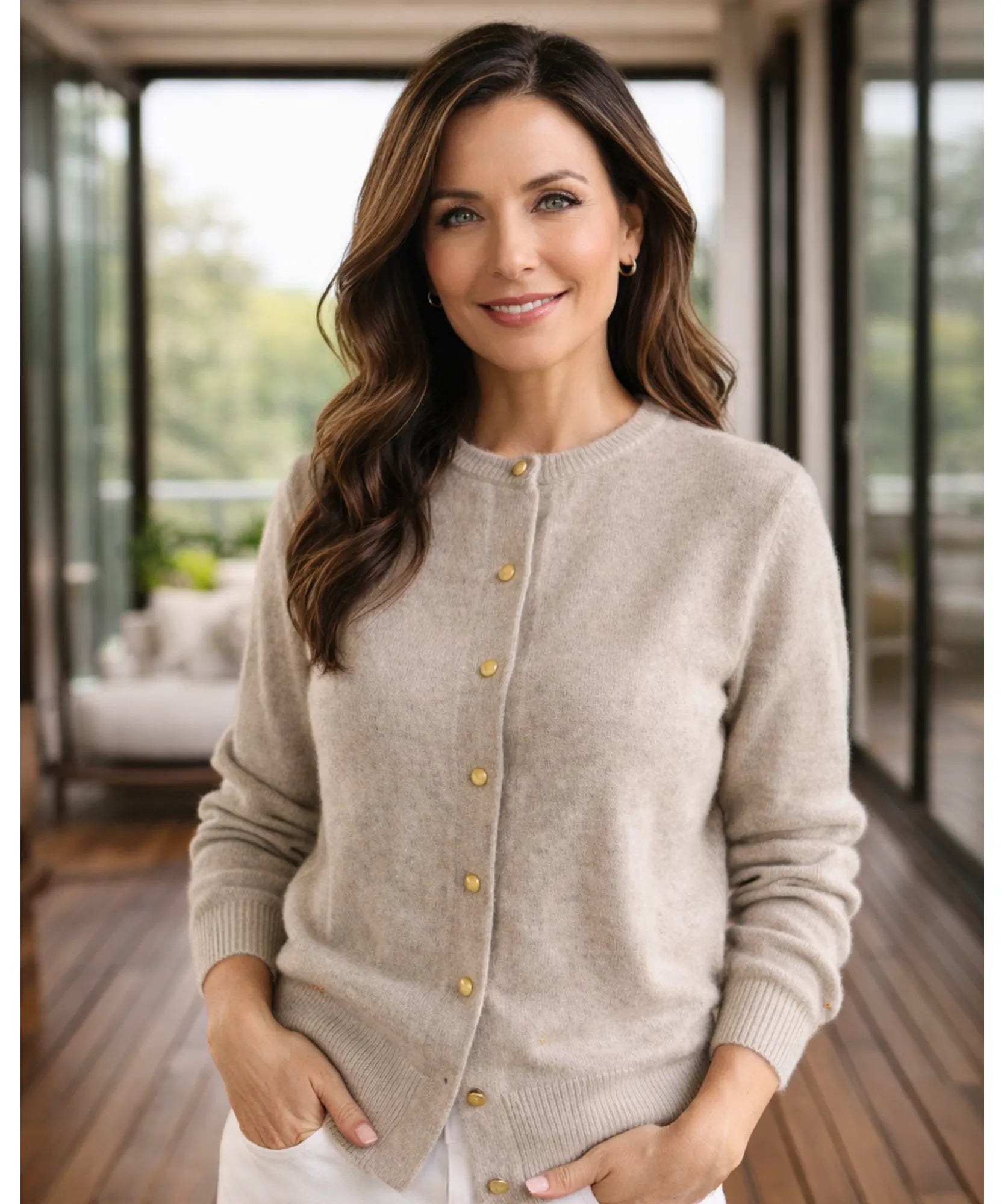 Acho que foi desenvolvido pensando em quem quer versatilidade real. O cardigan curto funciona abotoado como blusa ou aberto como sobreposição, dependendo do clima e da ocasião.