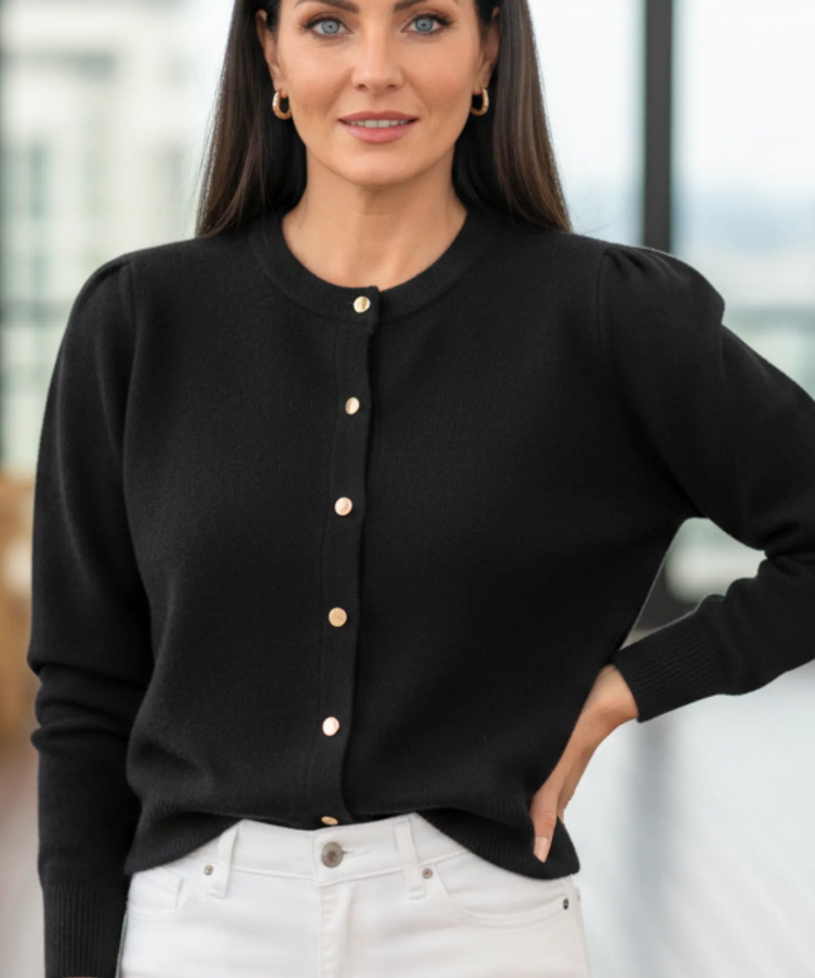 Não sei você, mas eu curto quando uma peça básica tem aquele diferencial que eleva qualquer produção. Os botões dourados fazem exatamente isso, transformando um cardigan simples em peça-chave do guarda-roupa.
