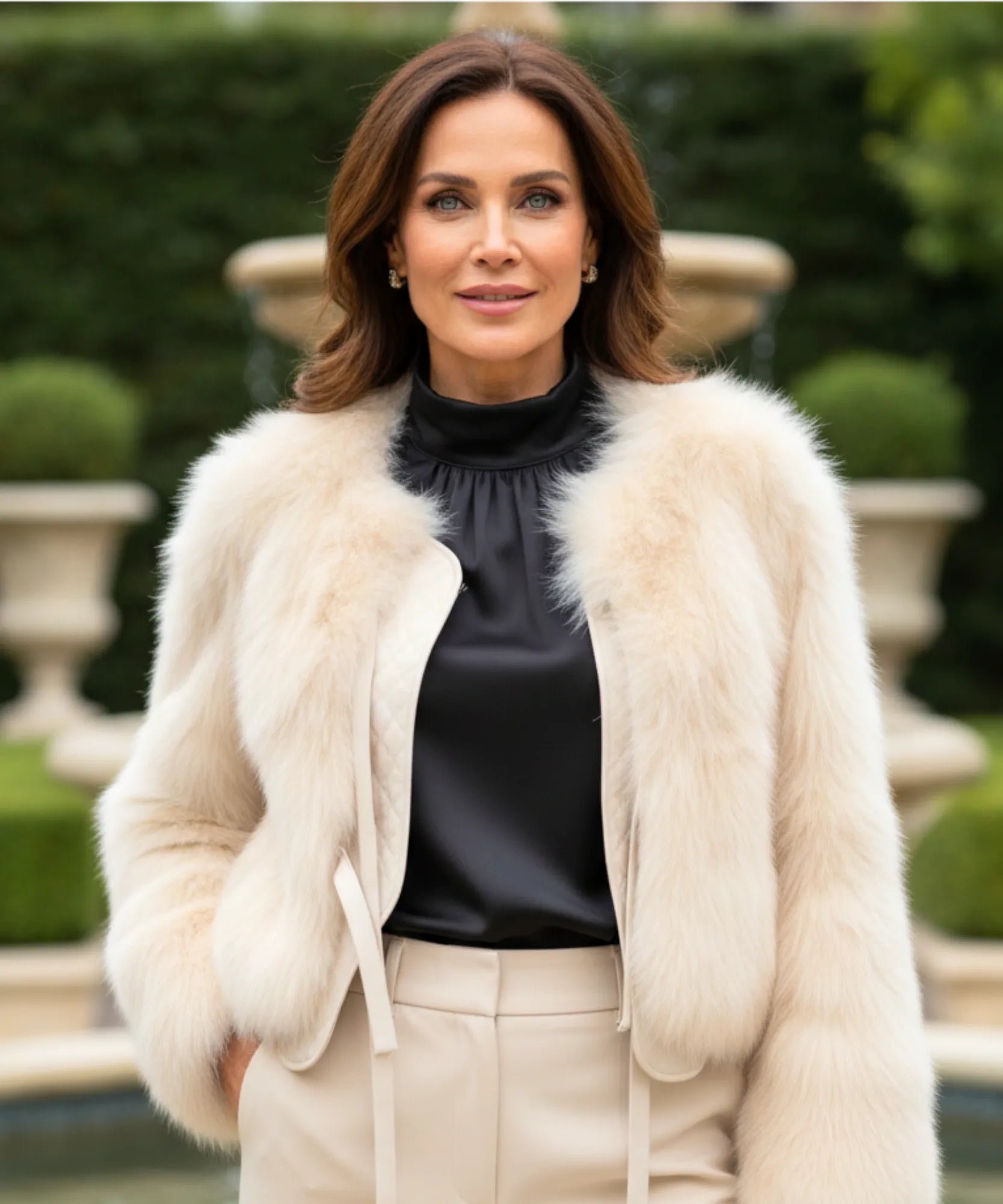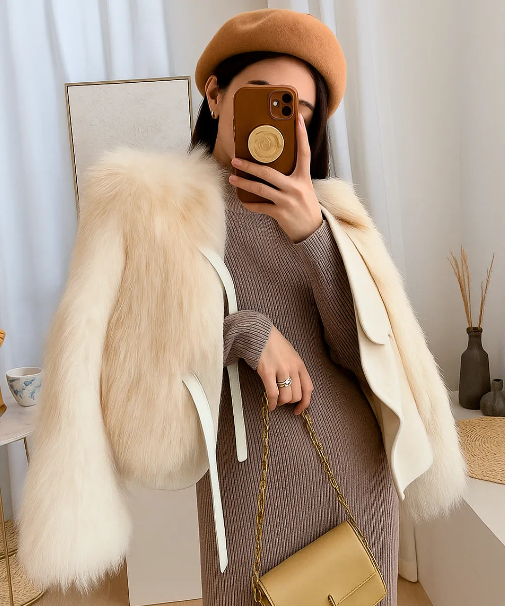 Esse casaco não é só bonito — ele foi feito com materiais premium que imitam perfeitamente a textura do pelo natural.