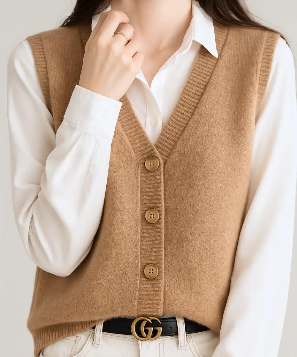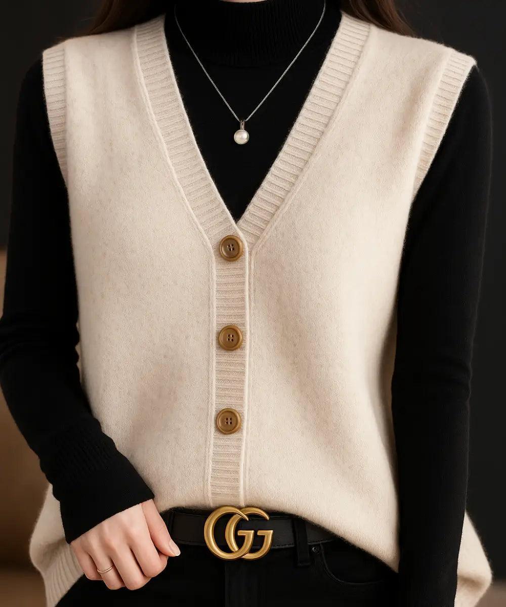 Esse colete feminino em tricot elegante com botões sem manga é aquele tipo de peça que dá um upgrade imediato no visual.