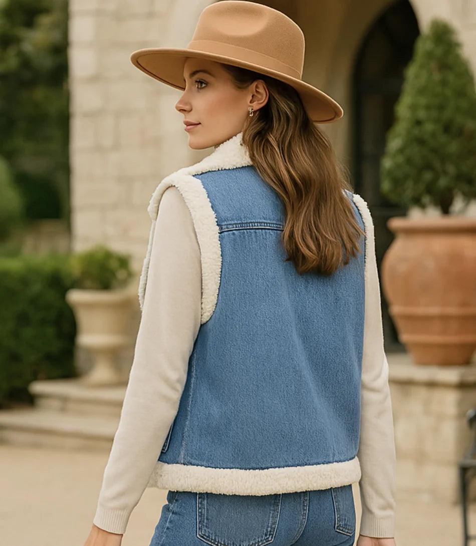 O colete jeans feminino com forro de pelúcia traz aquele equilíbrio entre look moderno e proteção nos dias frios.