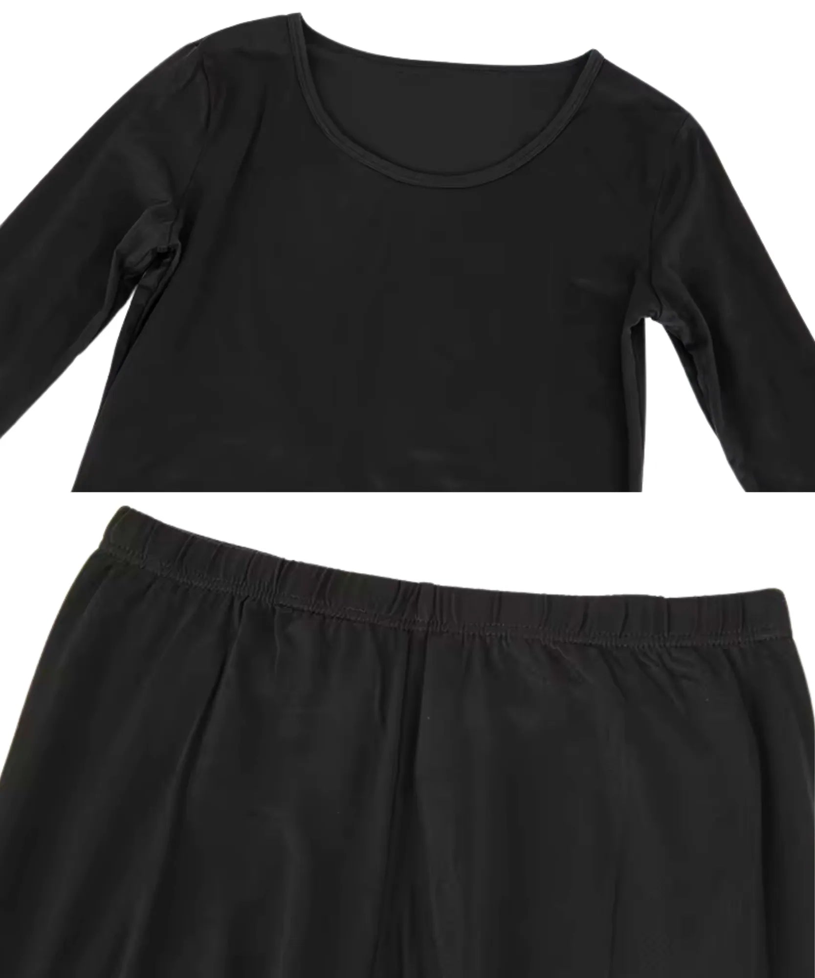 O conjunto térmico feminino segunda pele é feito em malha de 95% poliéster e 5% elastano com estrutura multicamada — a camada externa repele a umidade, a interna em forro aveludado retém o calor natural do corpo.