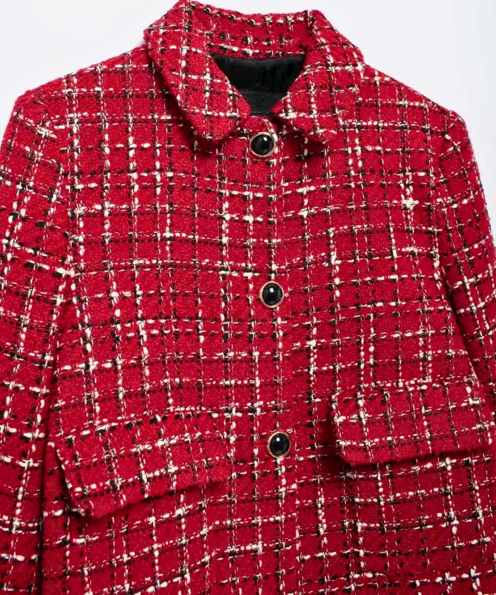 O tweed usado aqui tem textura rica e espessura no ponto certo — sem exageros.