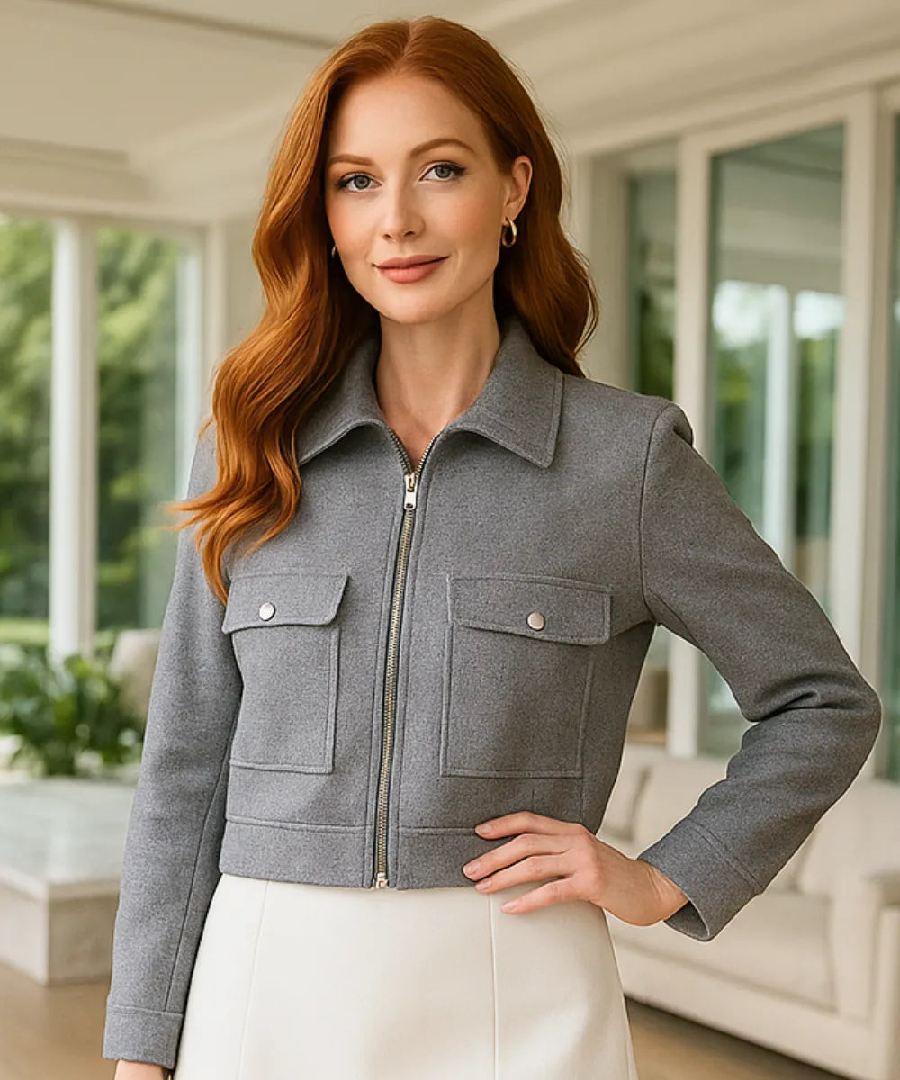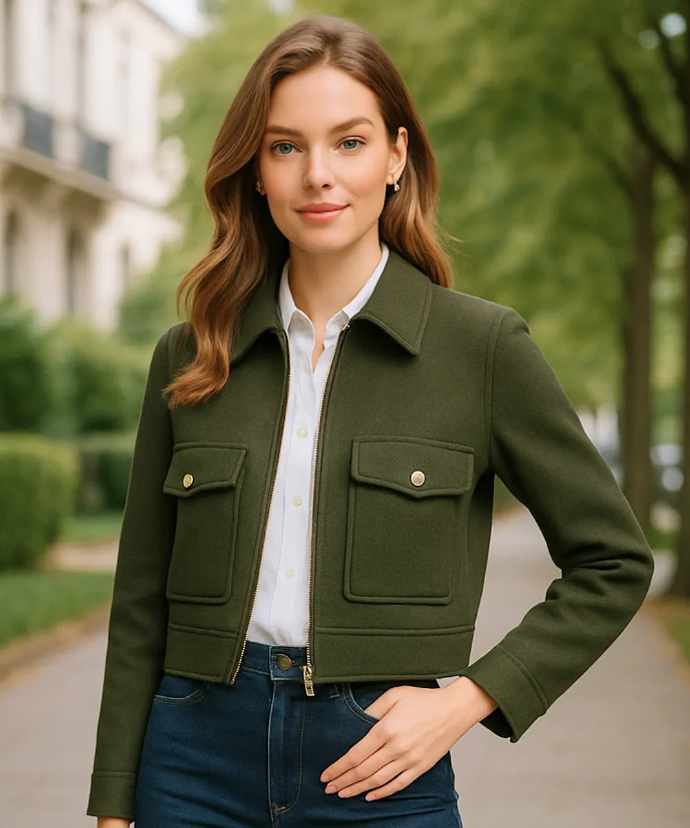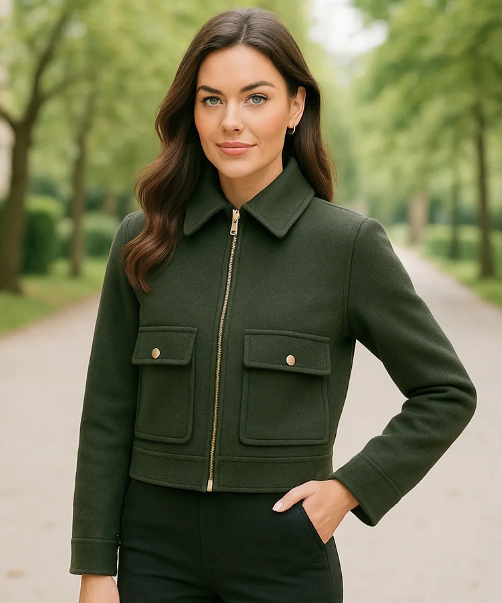 Essa jaqueta feminina de lã batida entrega exatamente isso: é charmosa, marcante e prática. Com zíper dourado, bolsos amplos com botão e gola estruturada, ela transforma qualquer visual com elegância instantânea.