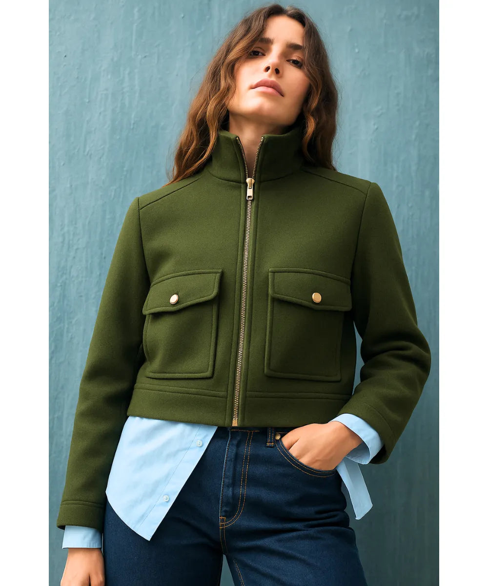 Talvez o que mais chame a atenção nessa jaqueta seja justamente o toque da lã batida. Ela tem estrutura, mas não pesa. Tem firmeza, mas ainda assim é incrivelmente elegante no corpo.