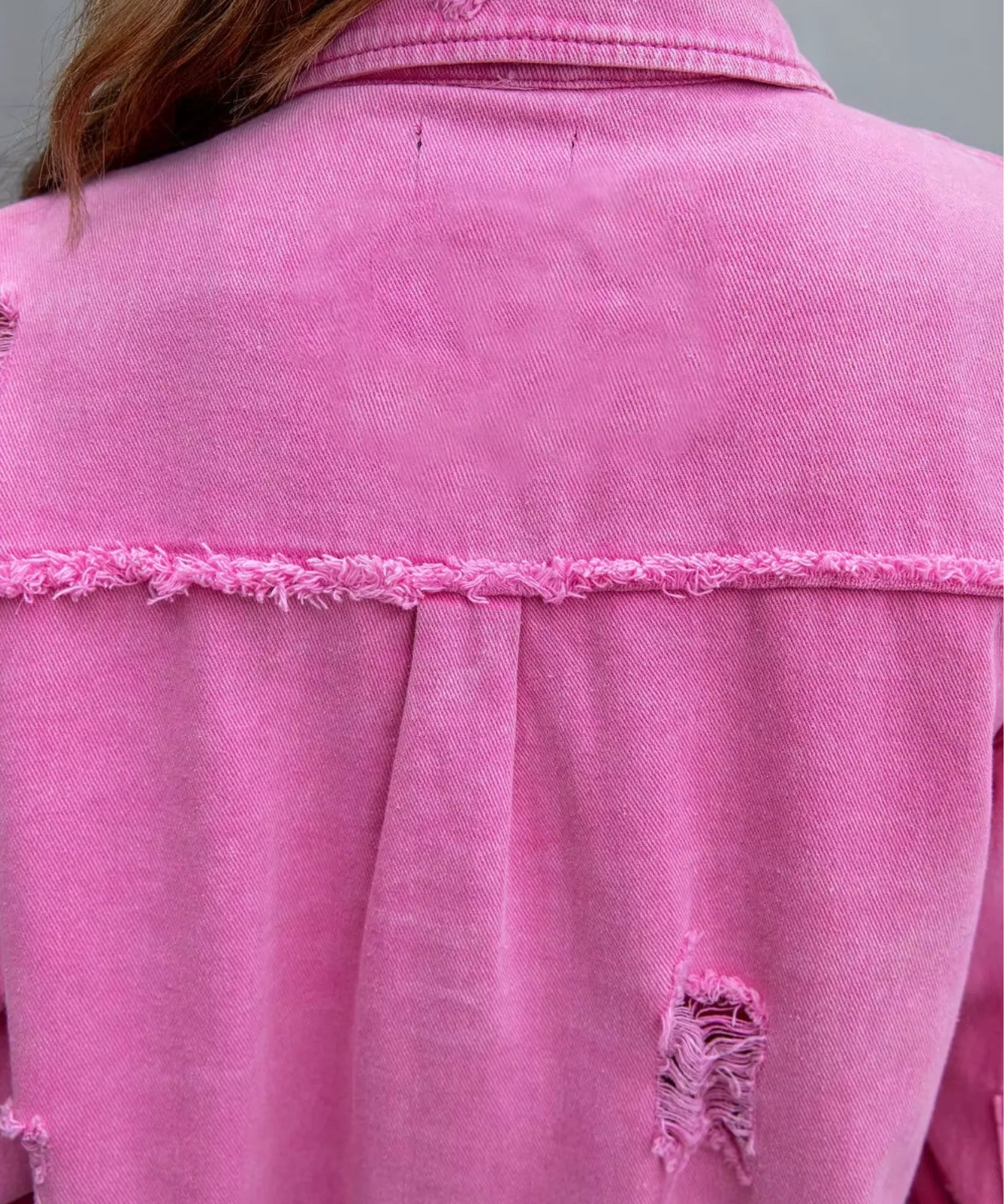 A jaqueta jeans feminina oversized com acabamento destroyed é perfeita para compor produções autênticas e cheias de atitude.