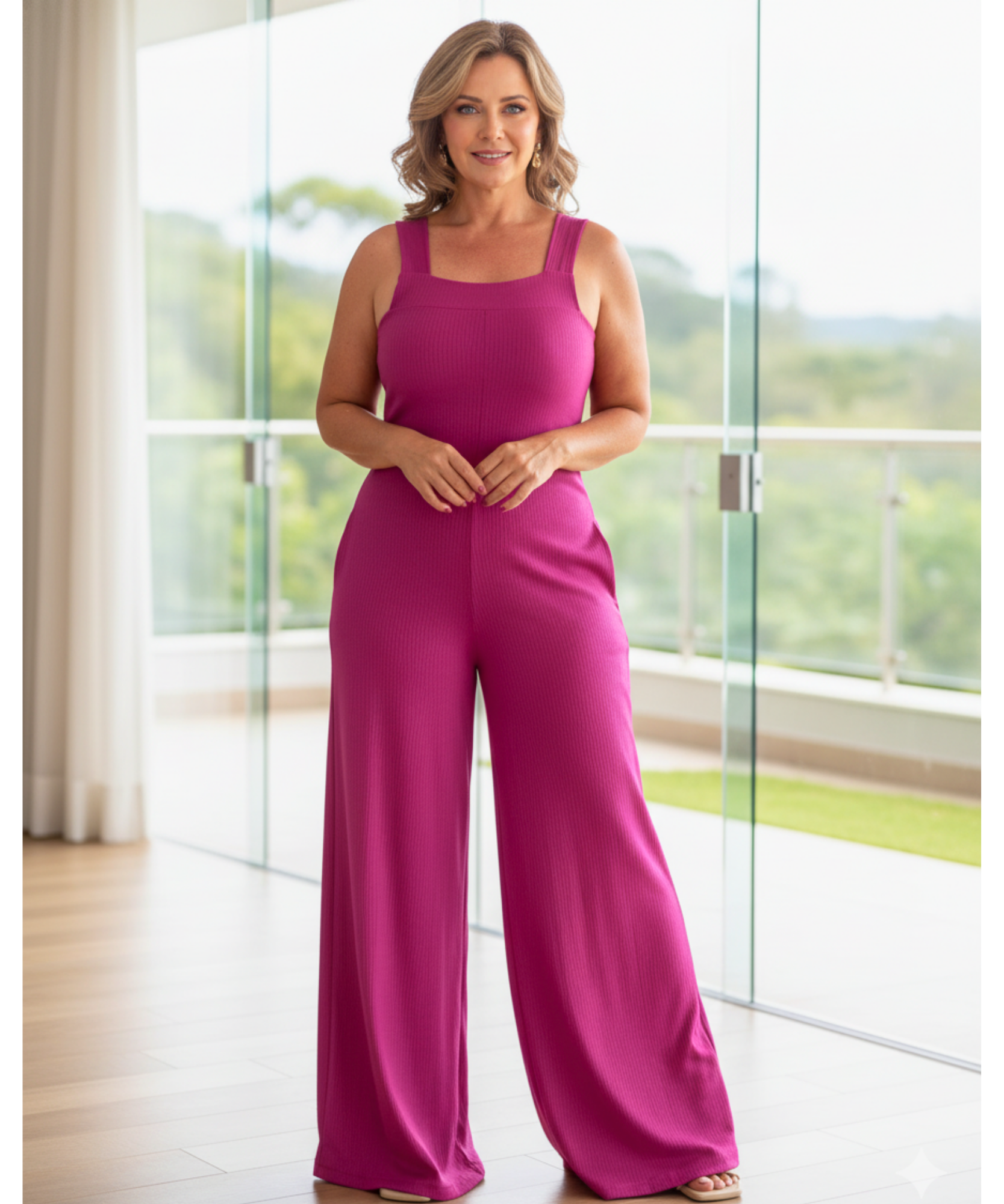 Desenvolvido especialmente para quem busca elegância contemporânea em peças versáteis, este macacão feminino canelado combina textura diferenciada com design assimétrico exclusivo.