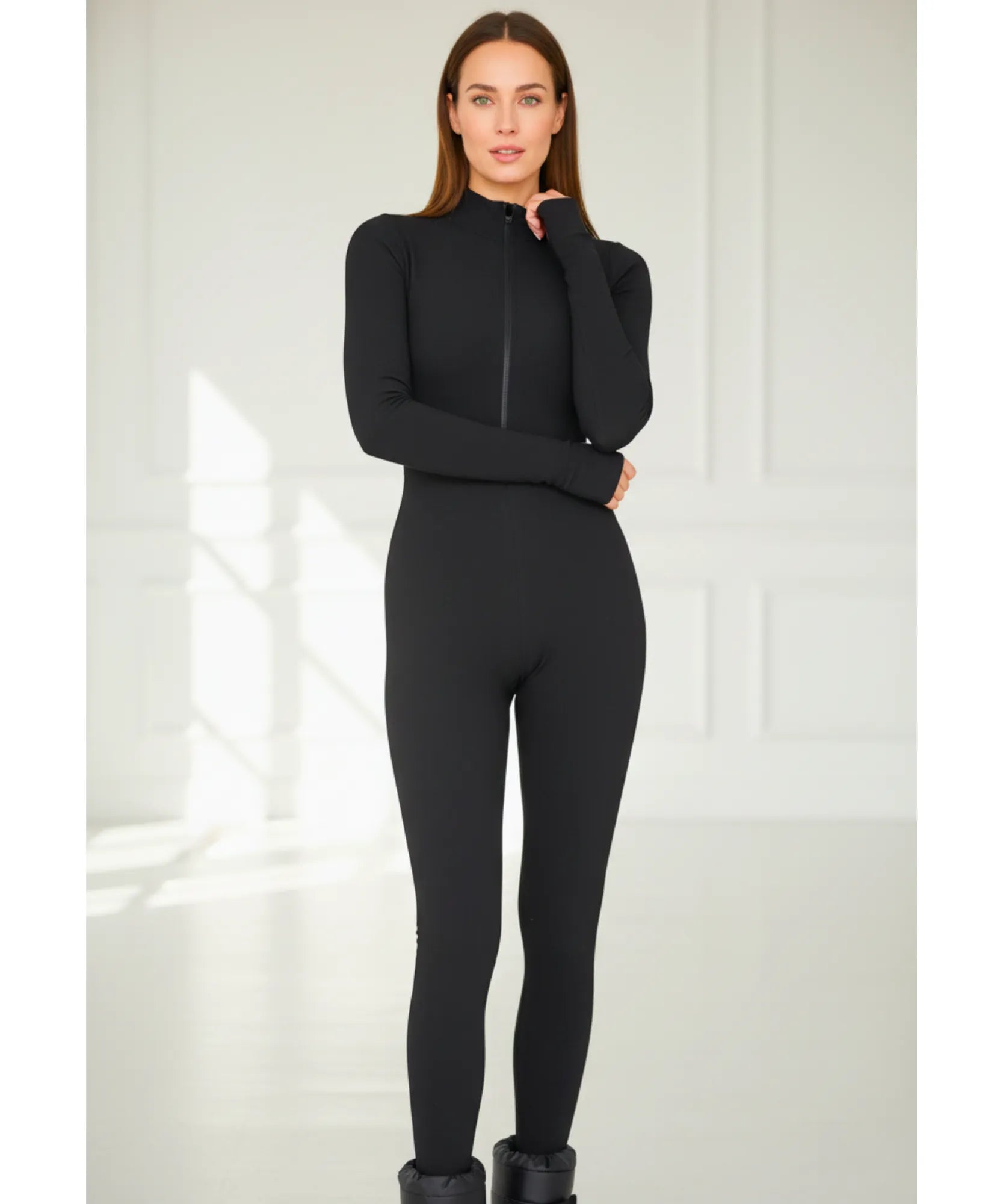 O macacão feminino manga longa com gola alta traz aquele visual clean que funciona em qualquer situação.