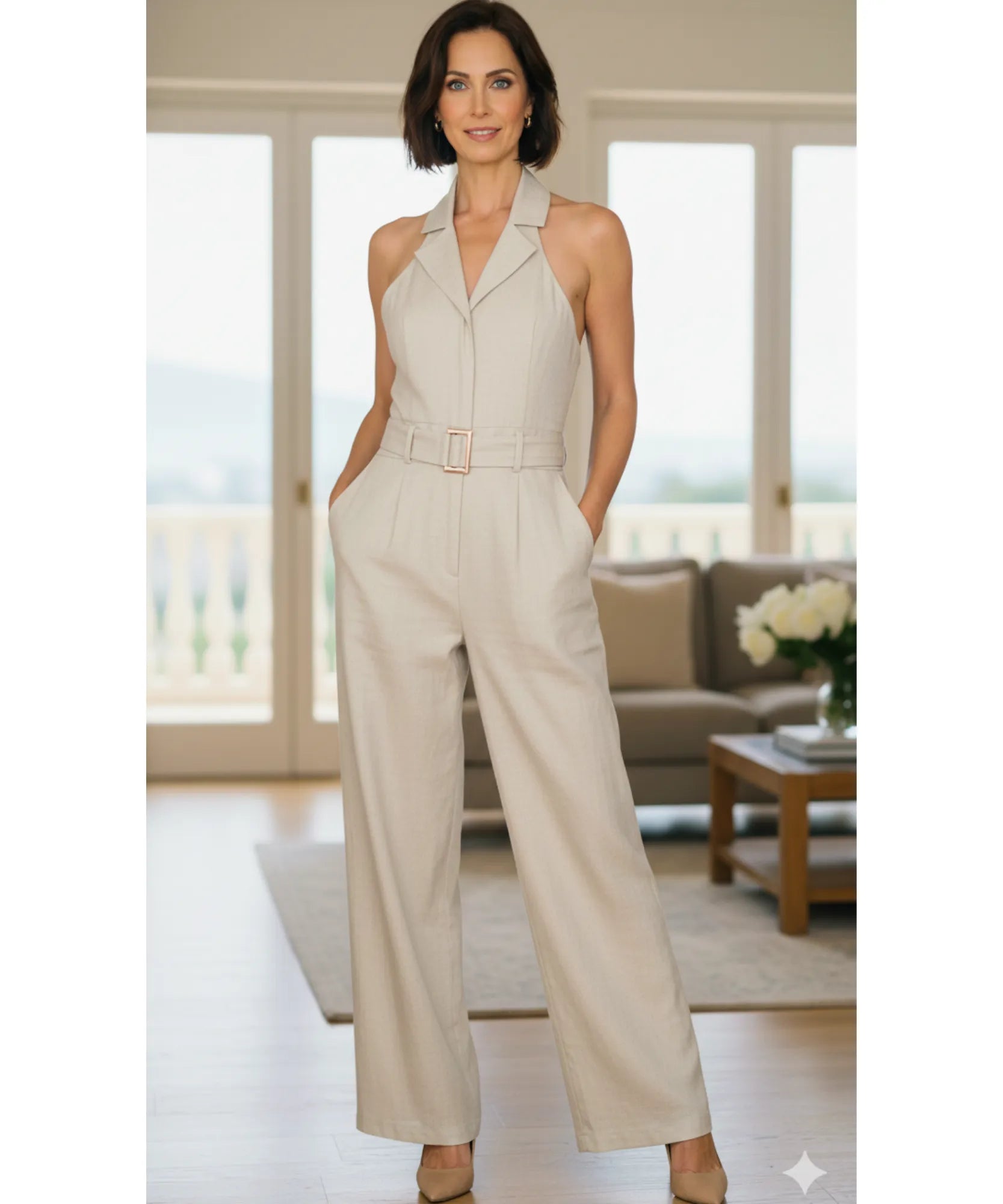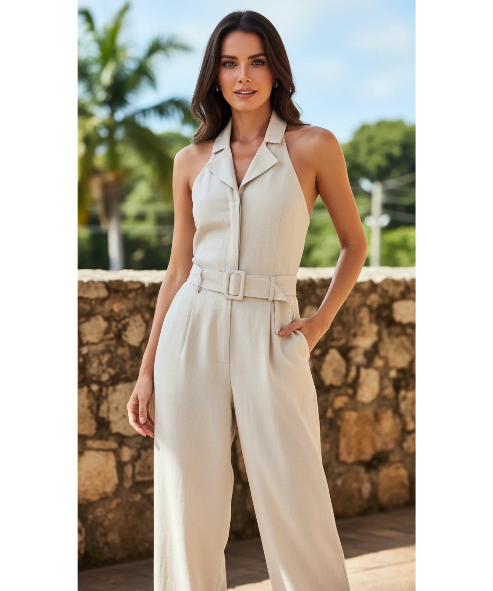 Este macacão feminino linho traz um corte alfaiataria que valoriza a postura e alonga a silhueta naturalmente.