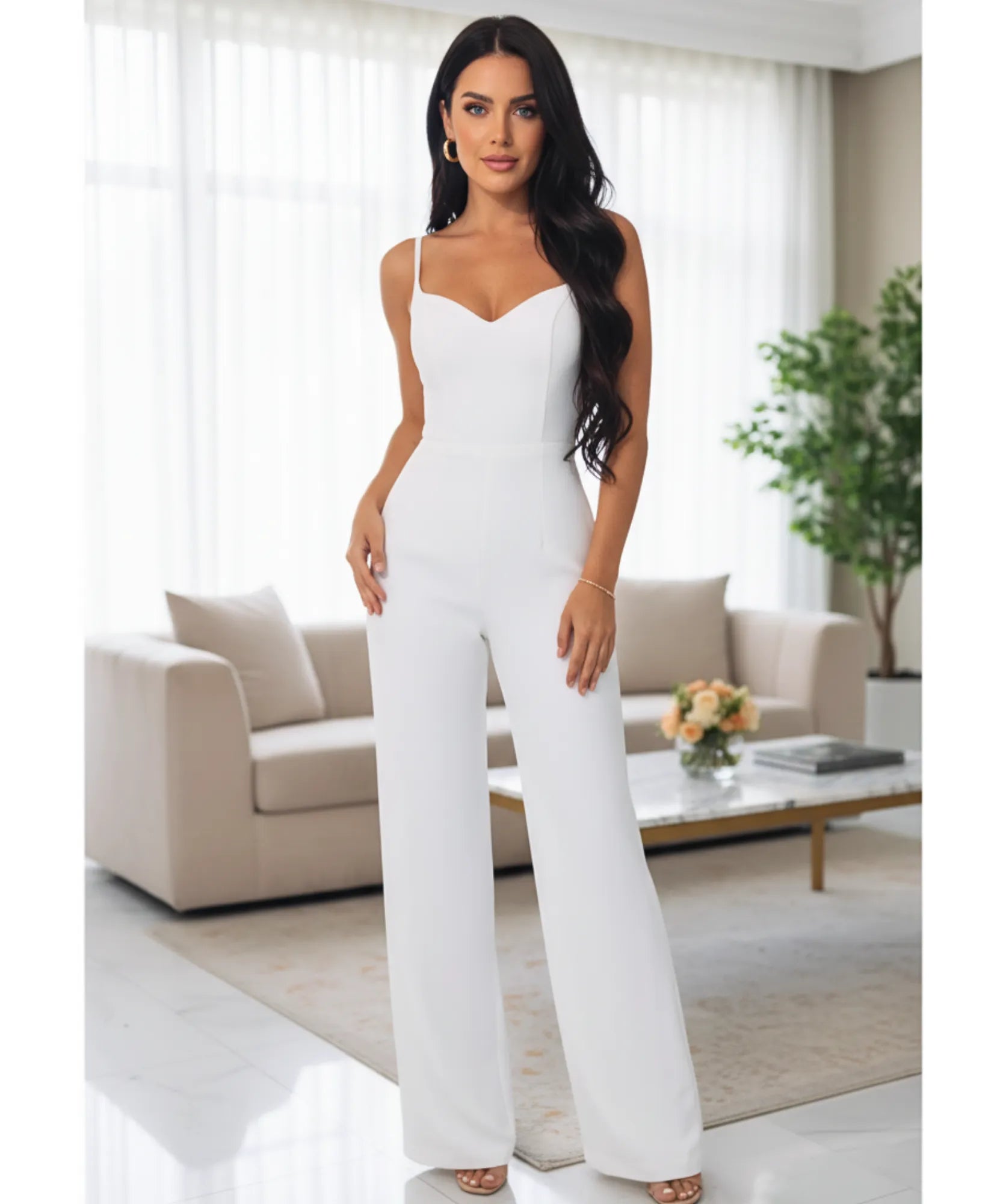 Este macacão elegante transita naturalmente entre diferentes códigos de vestimenta.