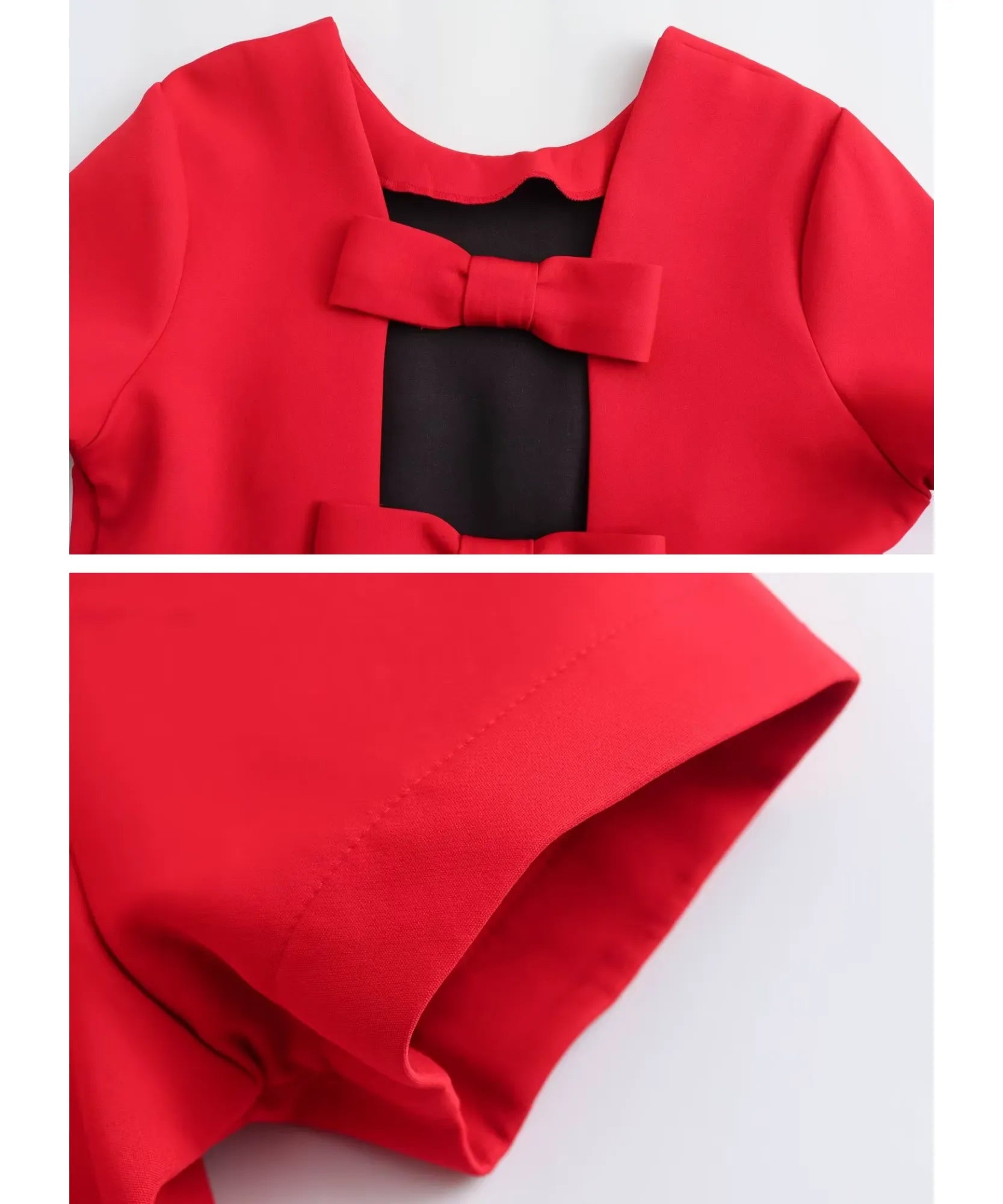 O macaquinho feminino vermelho traz aquele equilíbrio raro entre estrutura e leveza. Com alfaiataria impecável e laços decorativos nas costas, a peça entrega sofisticação sem parecer engessada. Não sei você, mas peças assim que unem elegância com praticidade sempre chamam atenção.