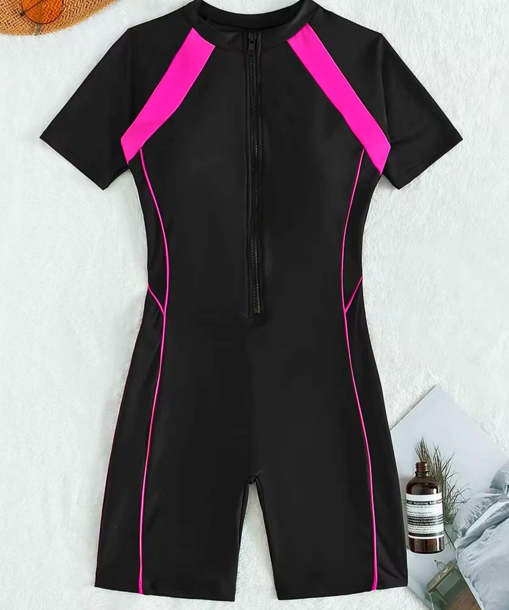 O zíper frontal ajustável oferece vestibilidade instantânea enquanto a manga curta proporciona mobilidade total nos braços. Confeccionado em tecido de secagem ultrarrápida, a peça realça sua confiança dentro e fora da água, seja na piscina, praia ou durante treinos intensos de surf.
