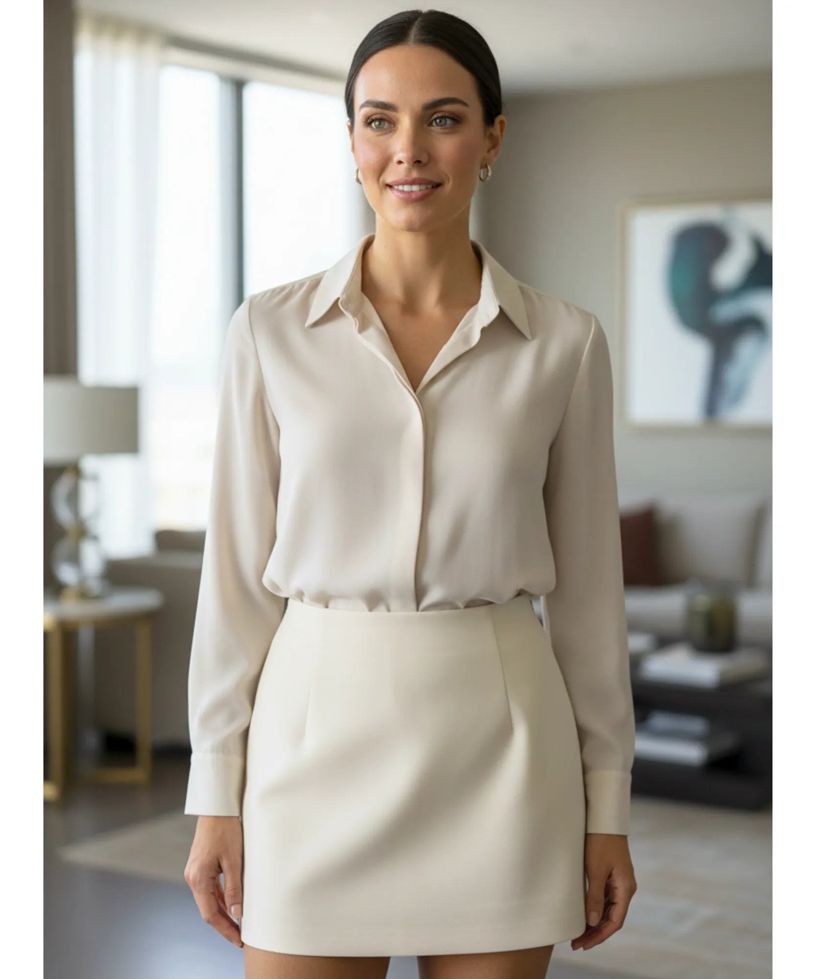 No pós-trabalho, troque por uma blusa mais leve e mantenha a sofisticação com menos formalidade.