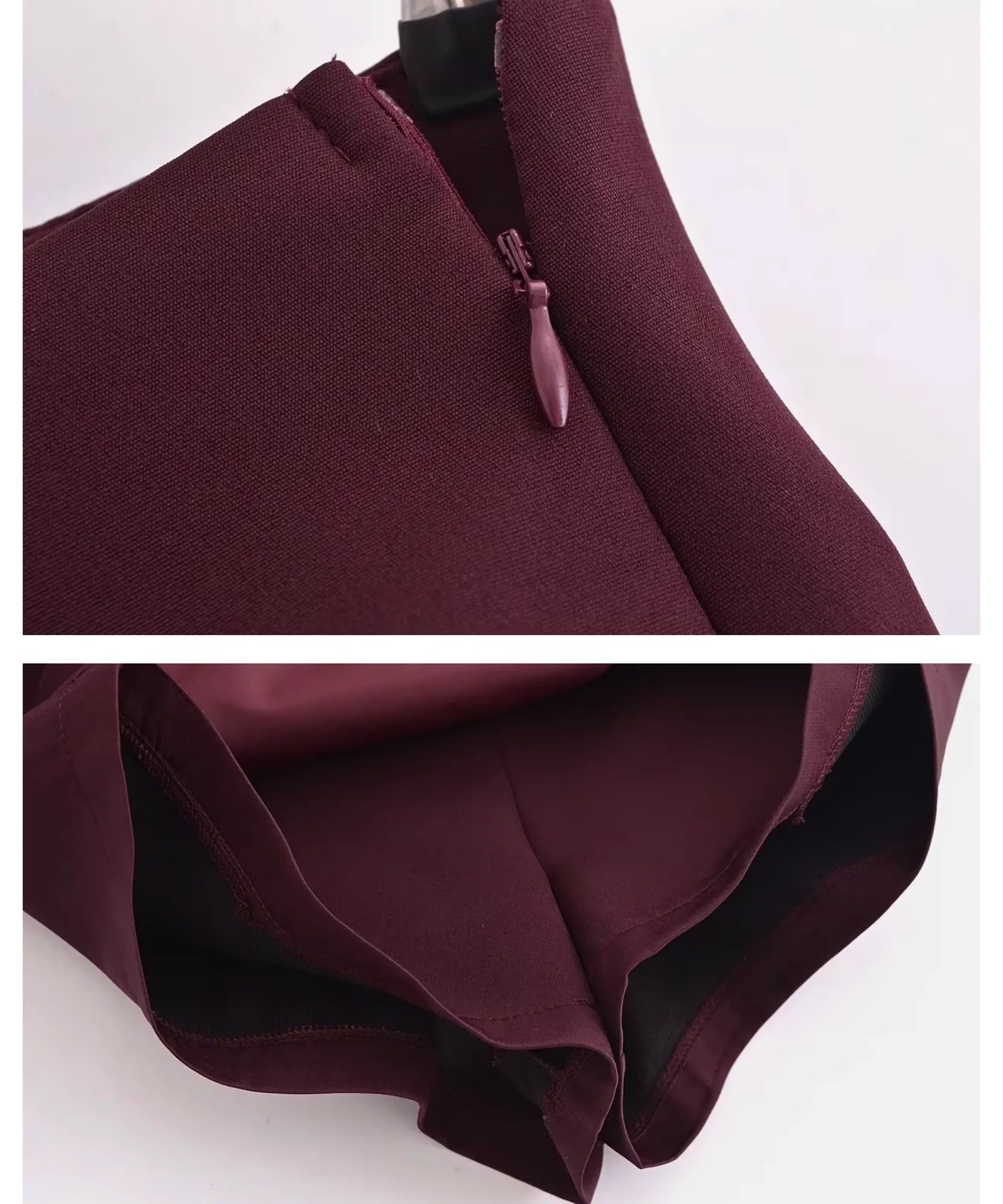 O zíper lateral discreto garante praticidade no vestir sem comprometer a estética clean.