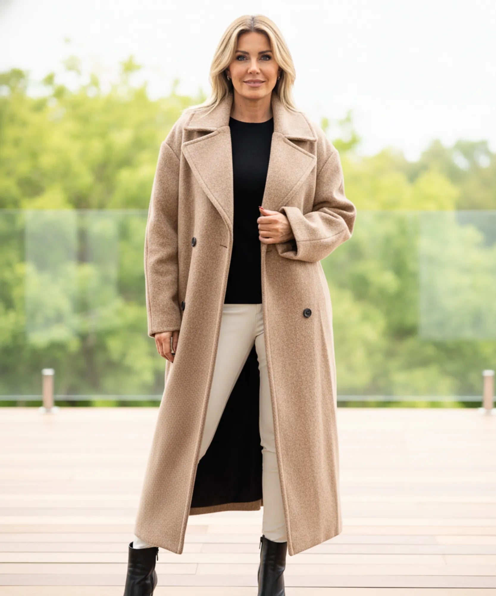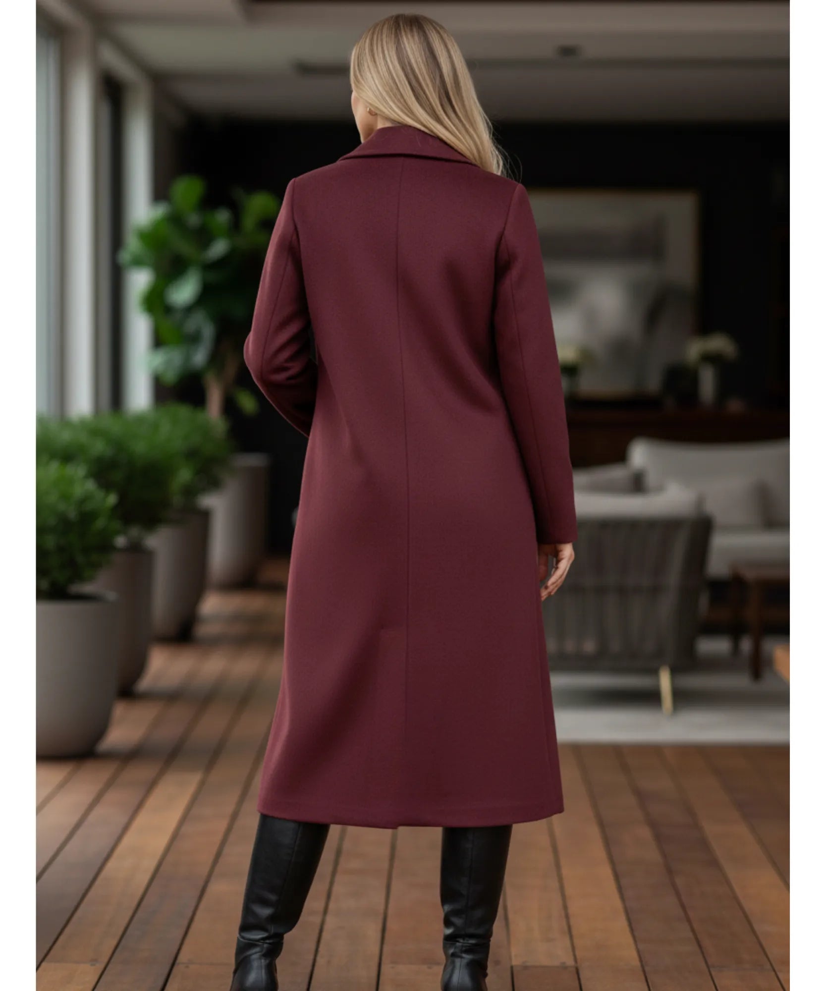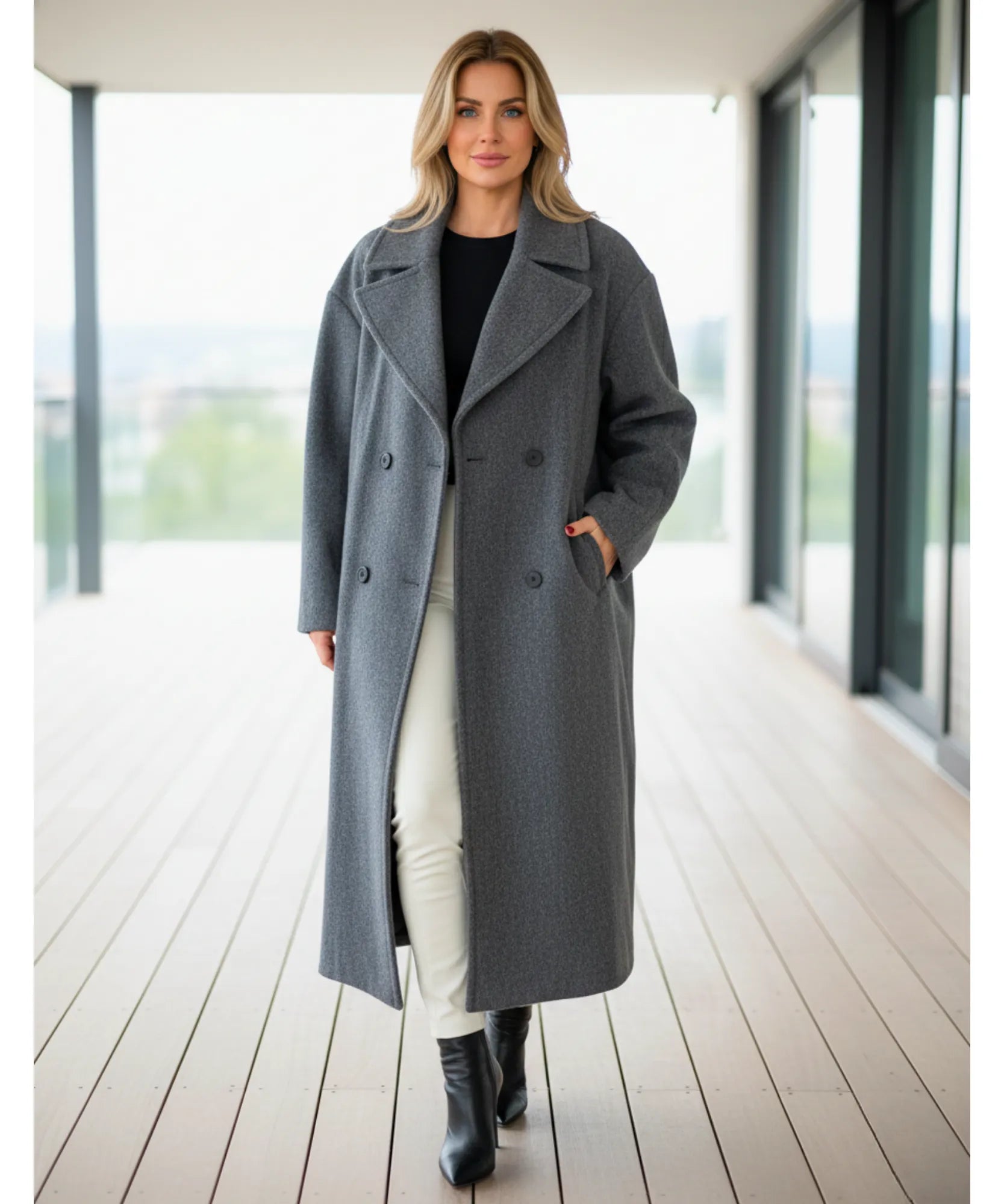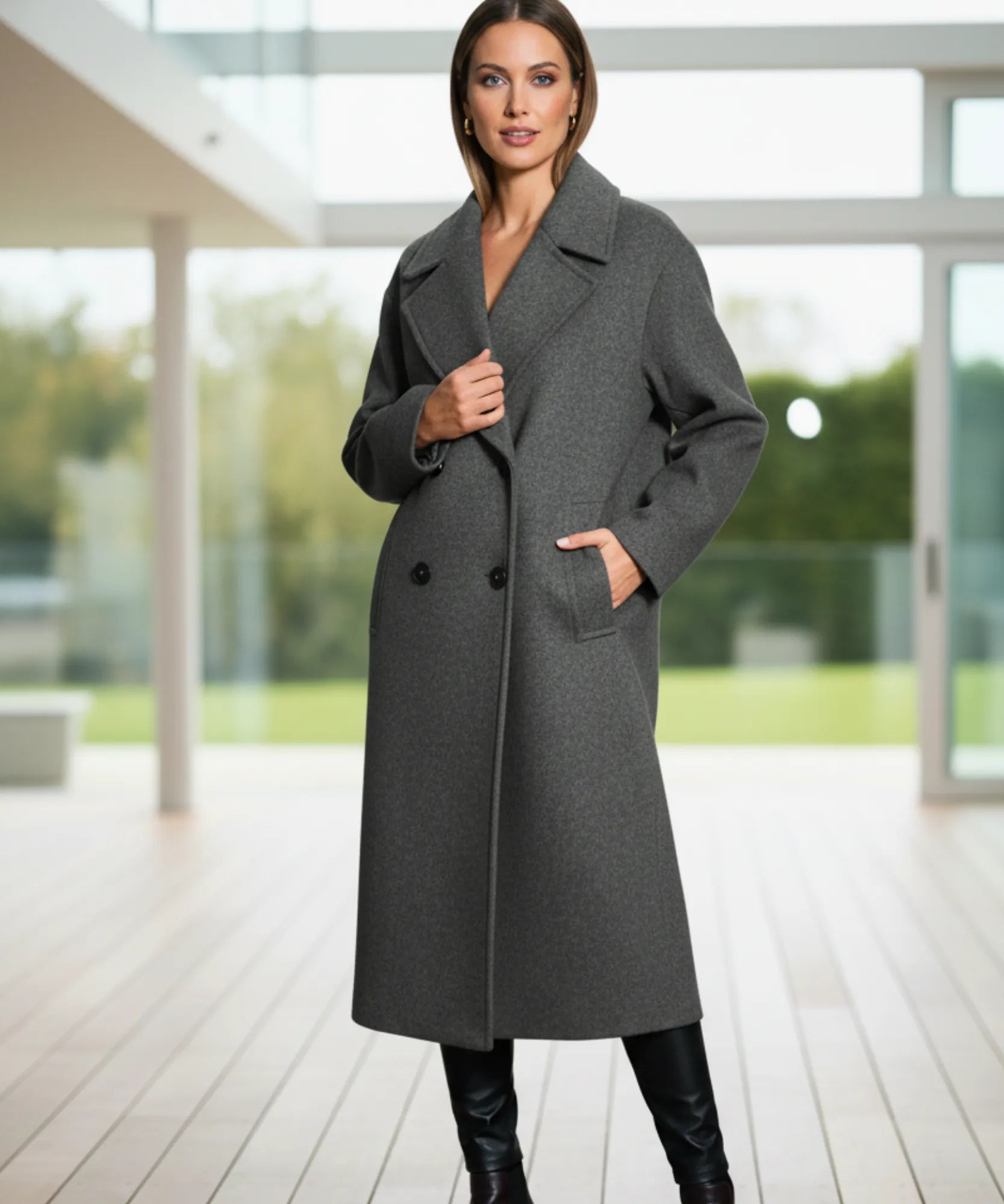 O sobretudo feminino de lã batida com corte estruturado entrega um visual sofisticado com presença marcante.