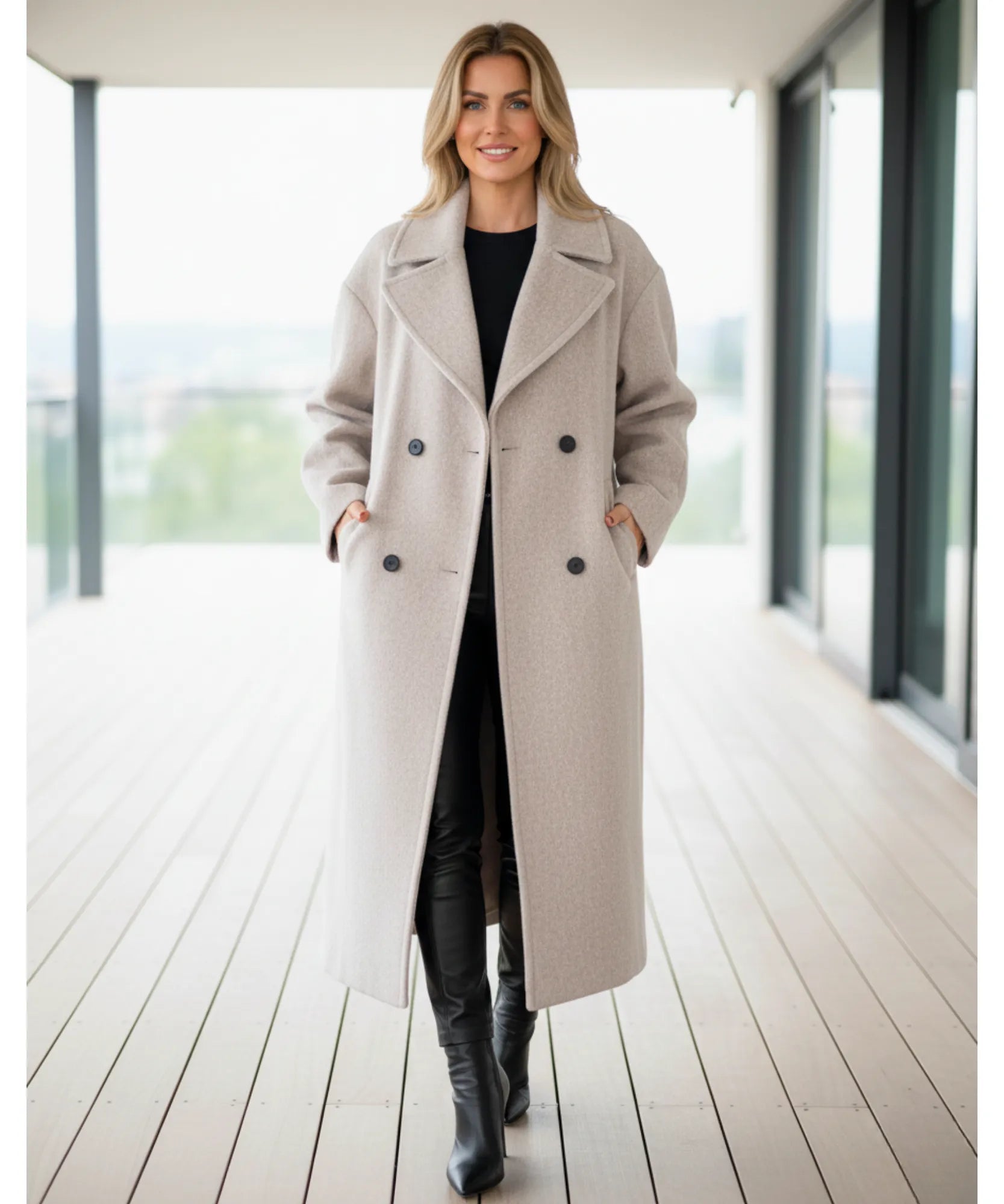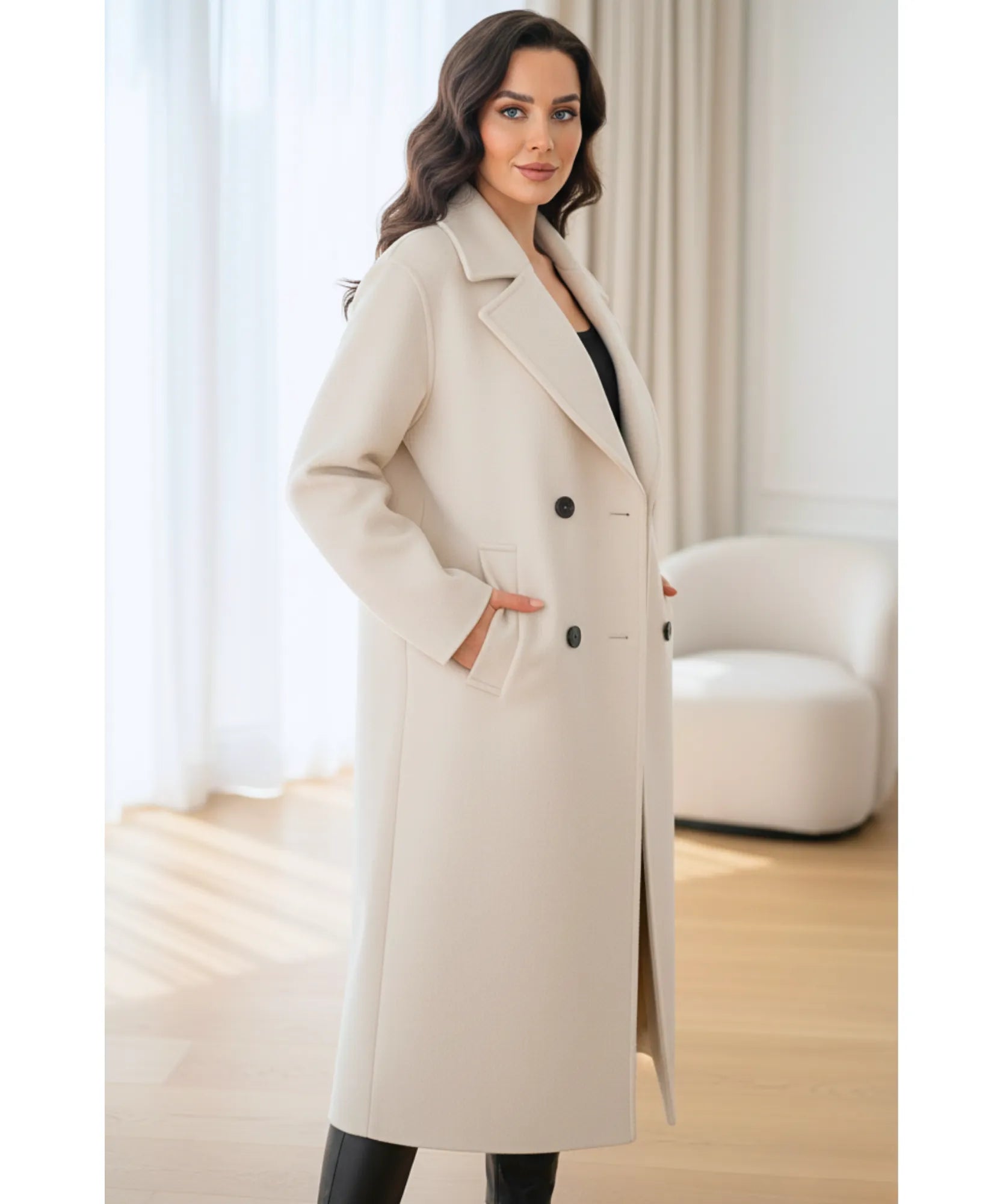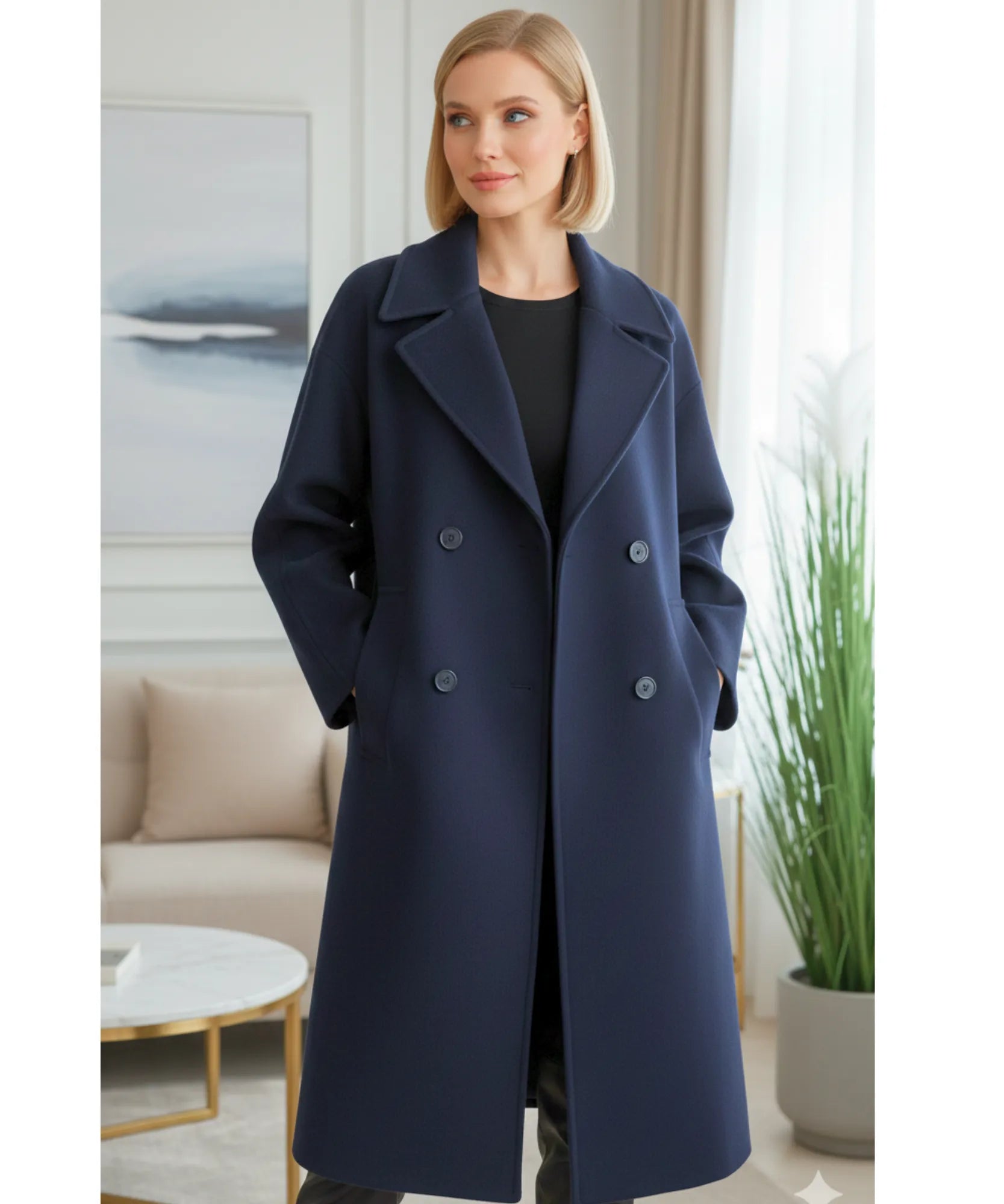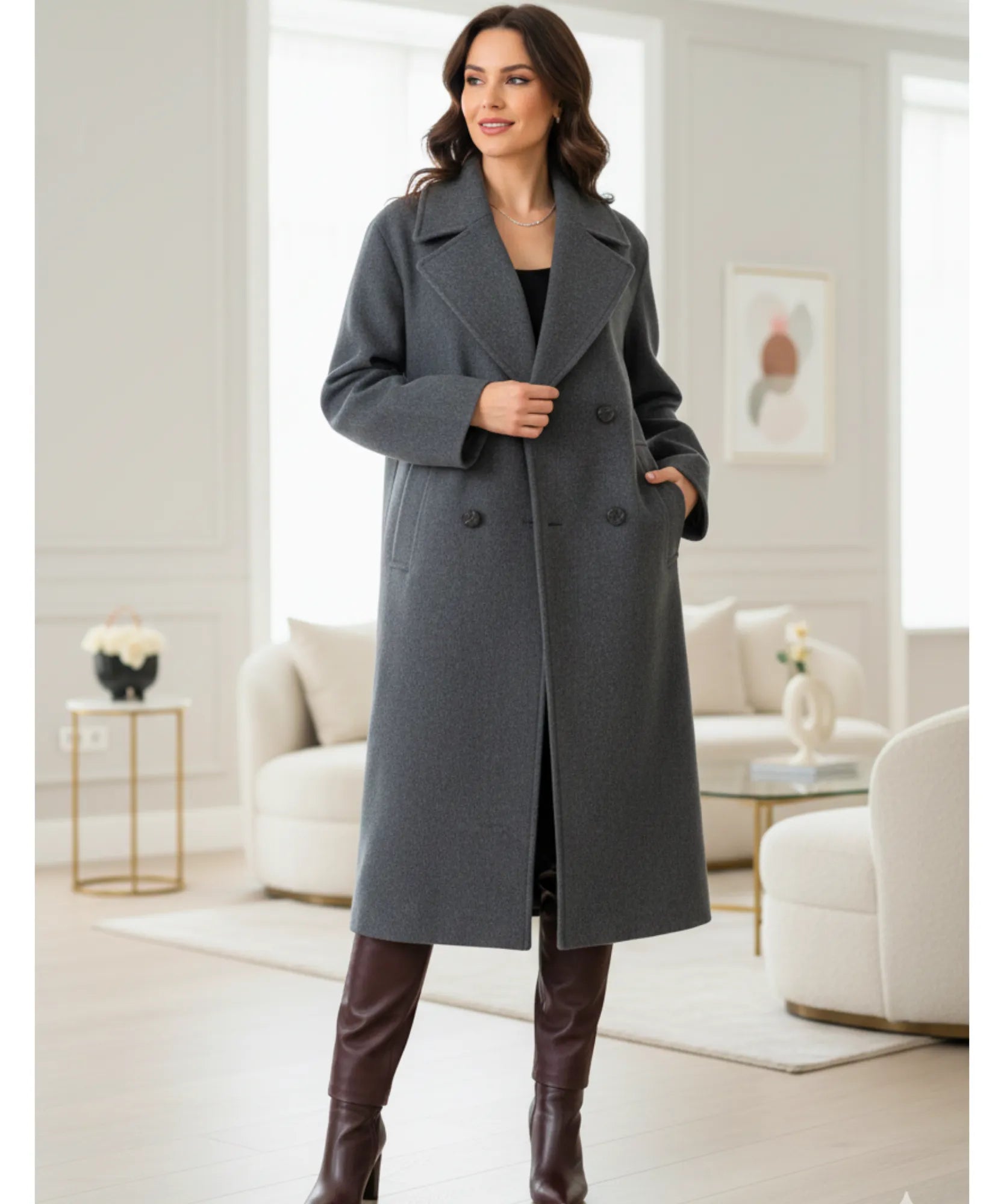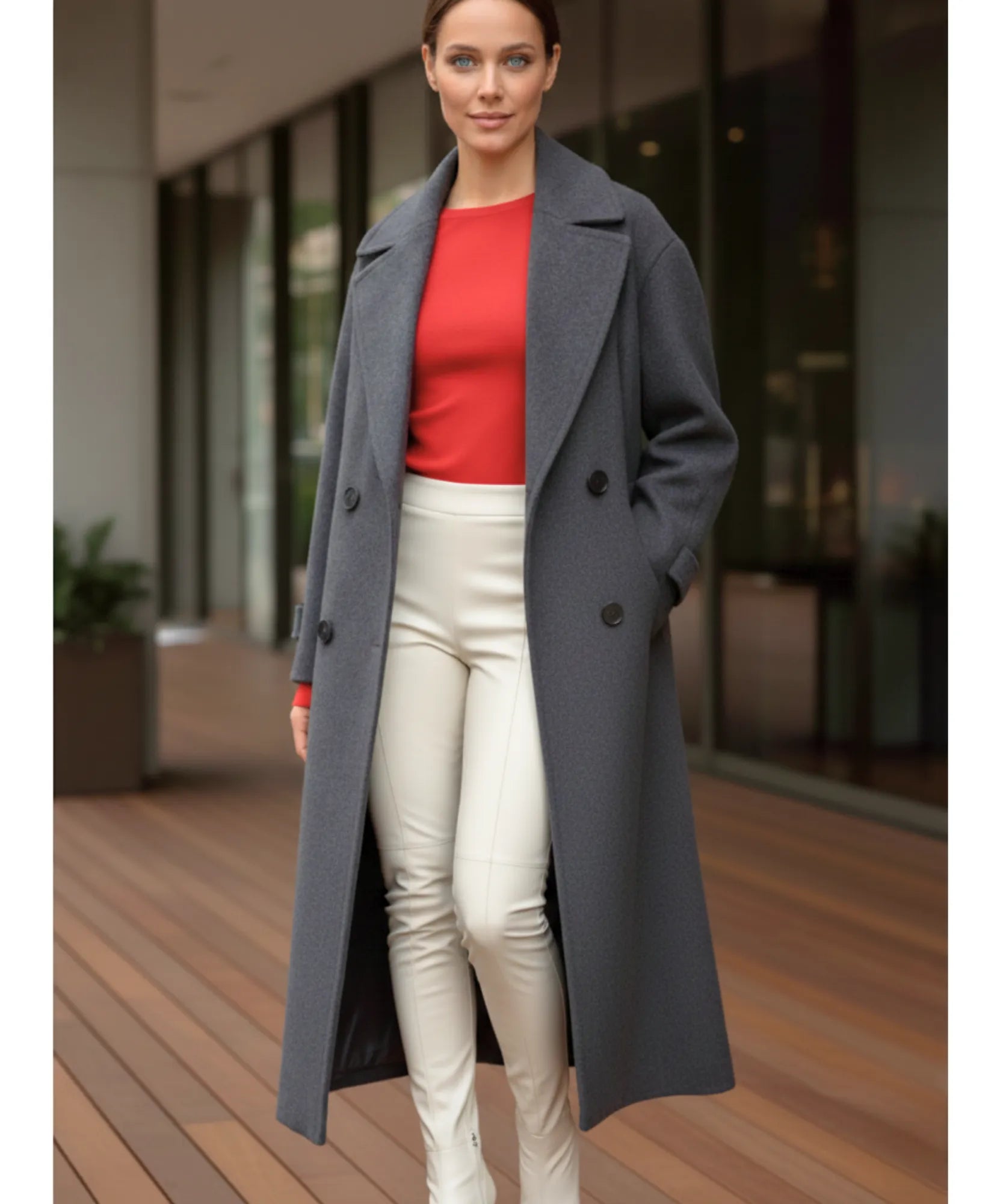 O sobretudo feminino de lã batida com corte estruturado entrega um visual sofisticado com presença marcante.