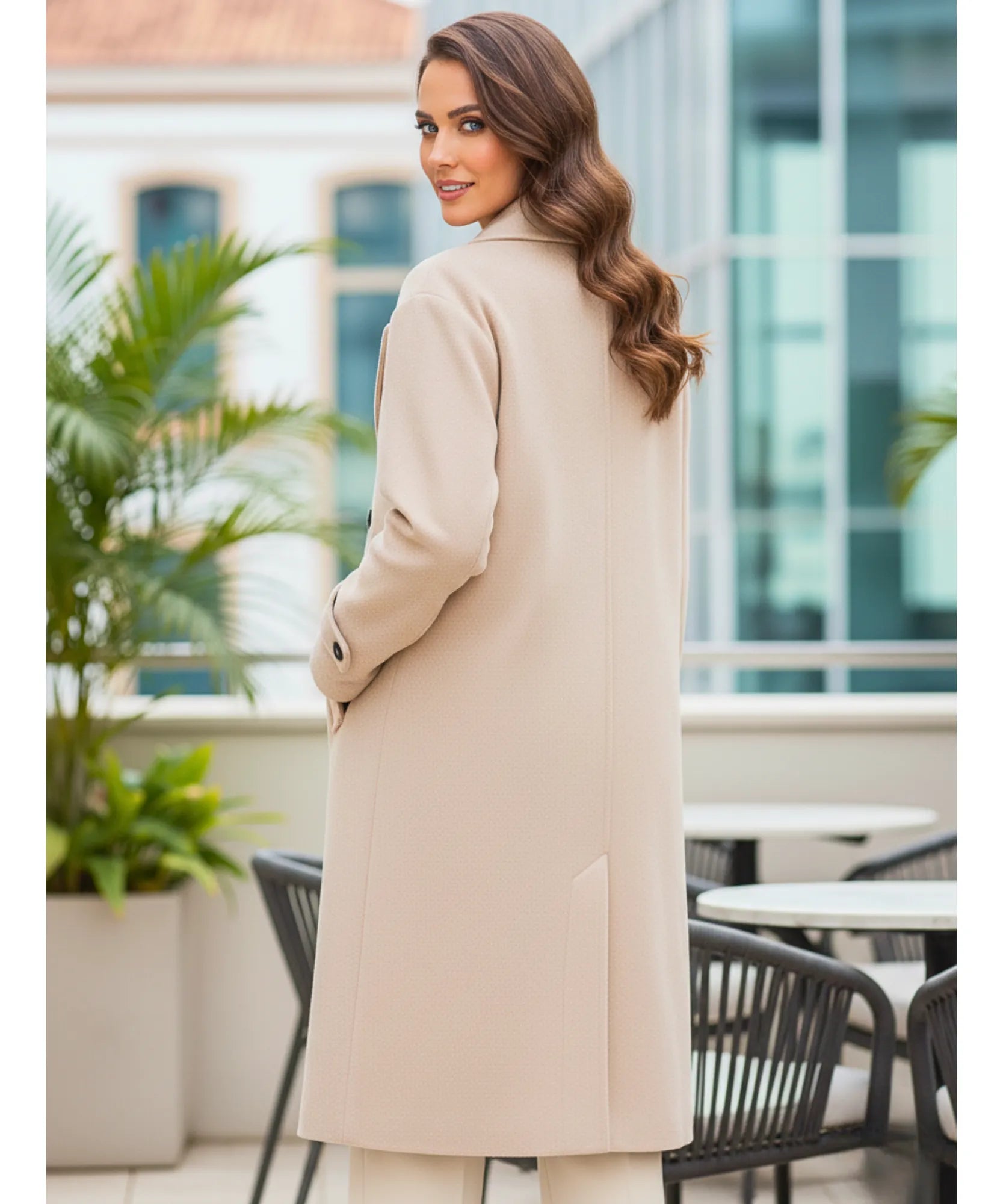 O comprimento alongado dá aquele ar de elegância discreta — sem exagero, sem firula.