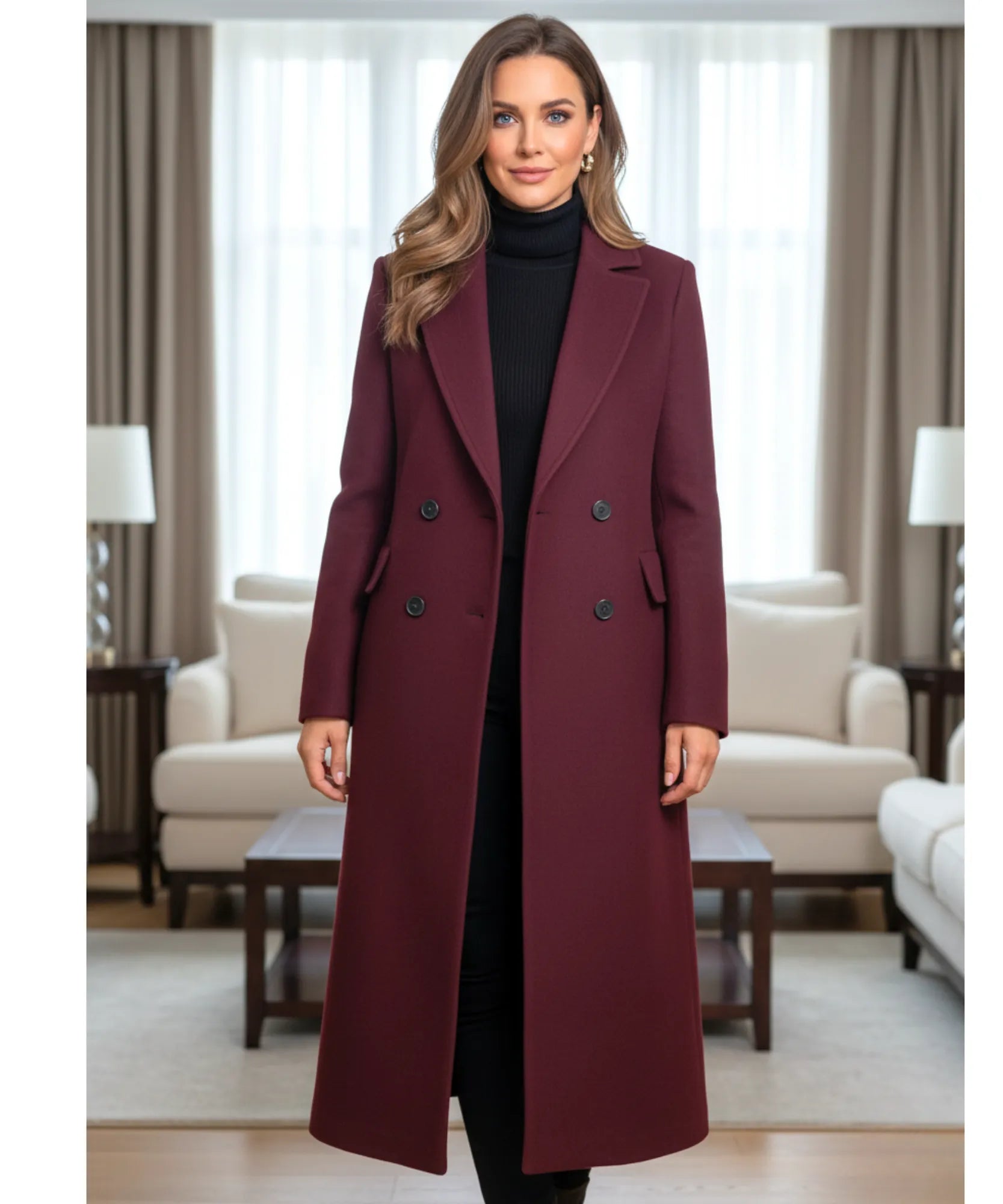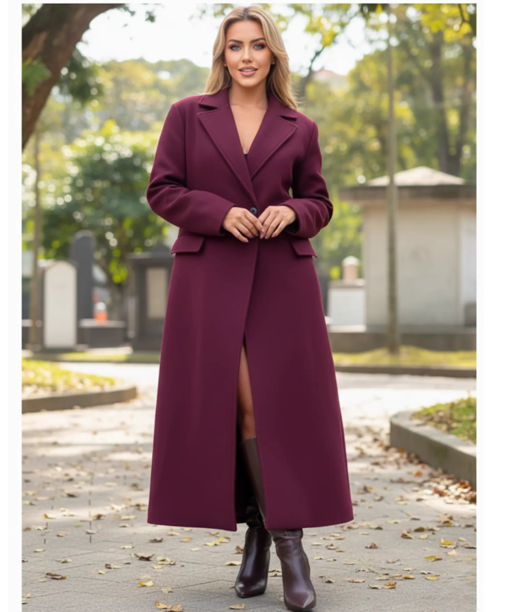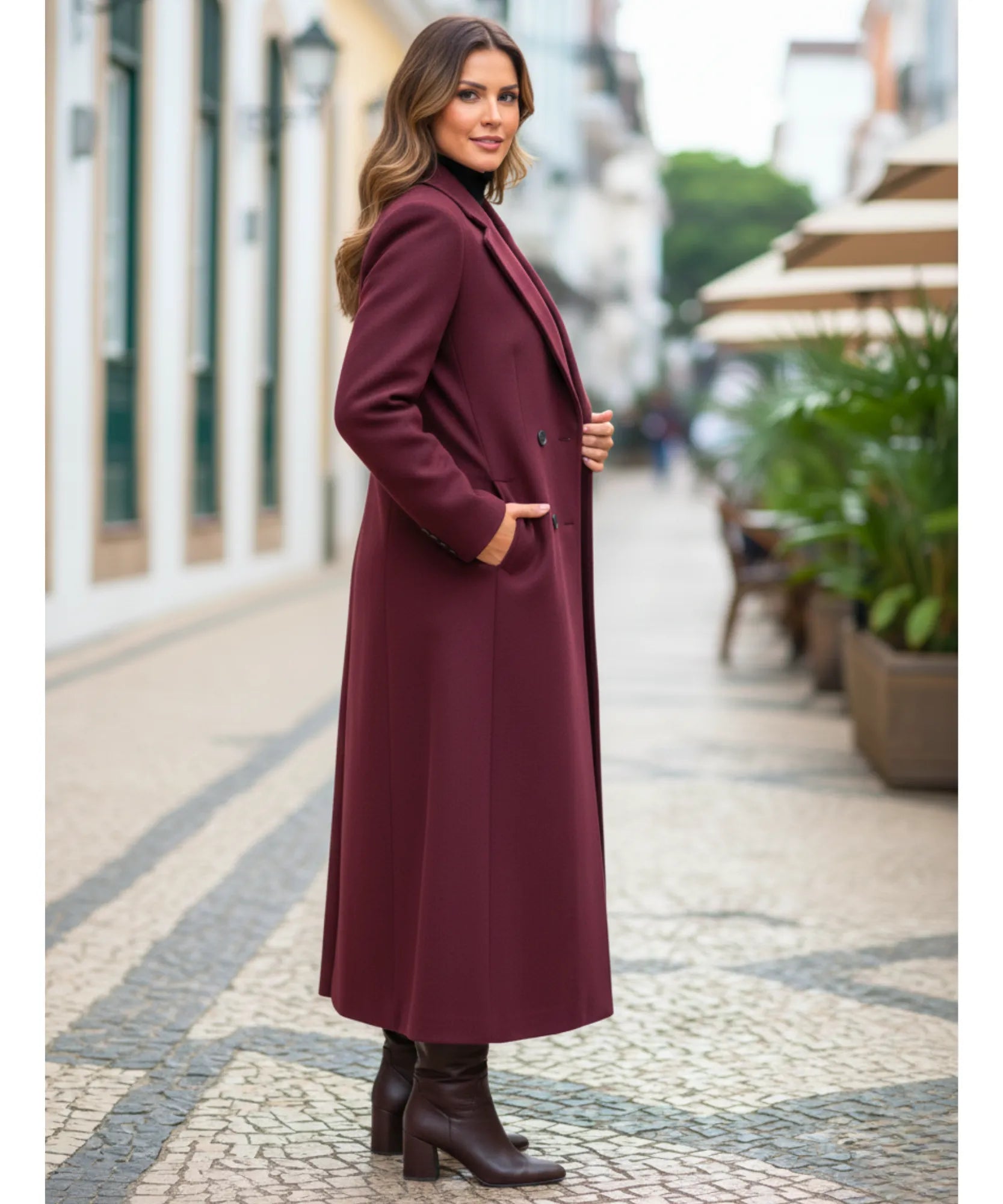 O sobretudo feminino longo de lã batida é o tipo de peça que transforma qualquer produção com um toque imponente e atemporal.