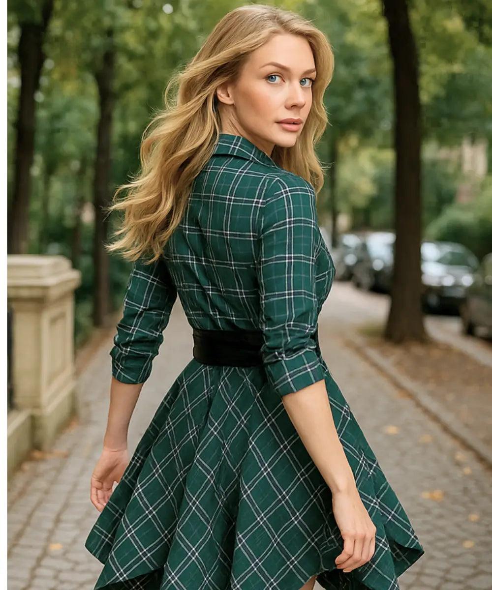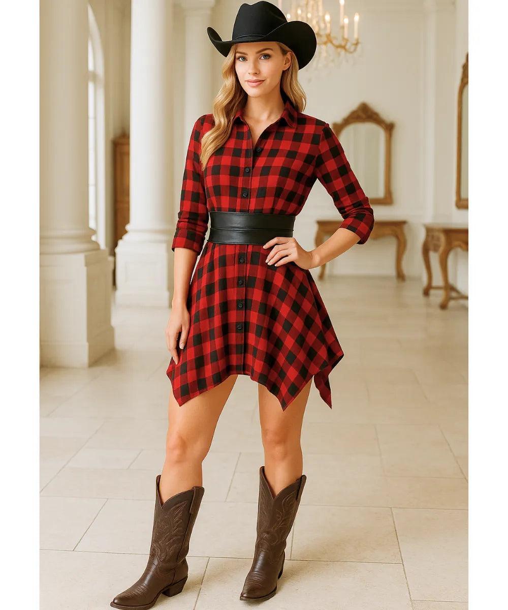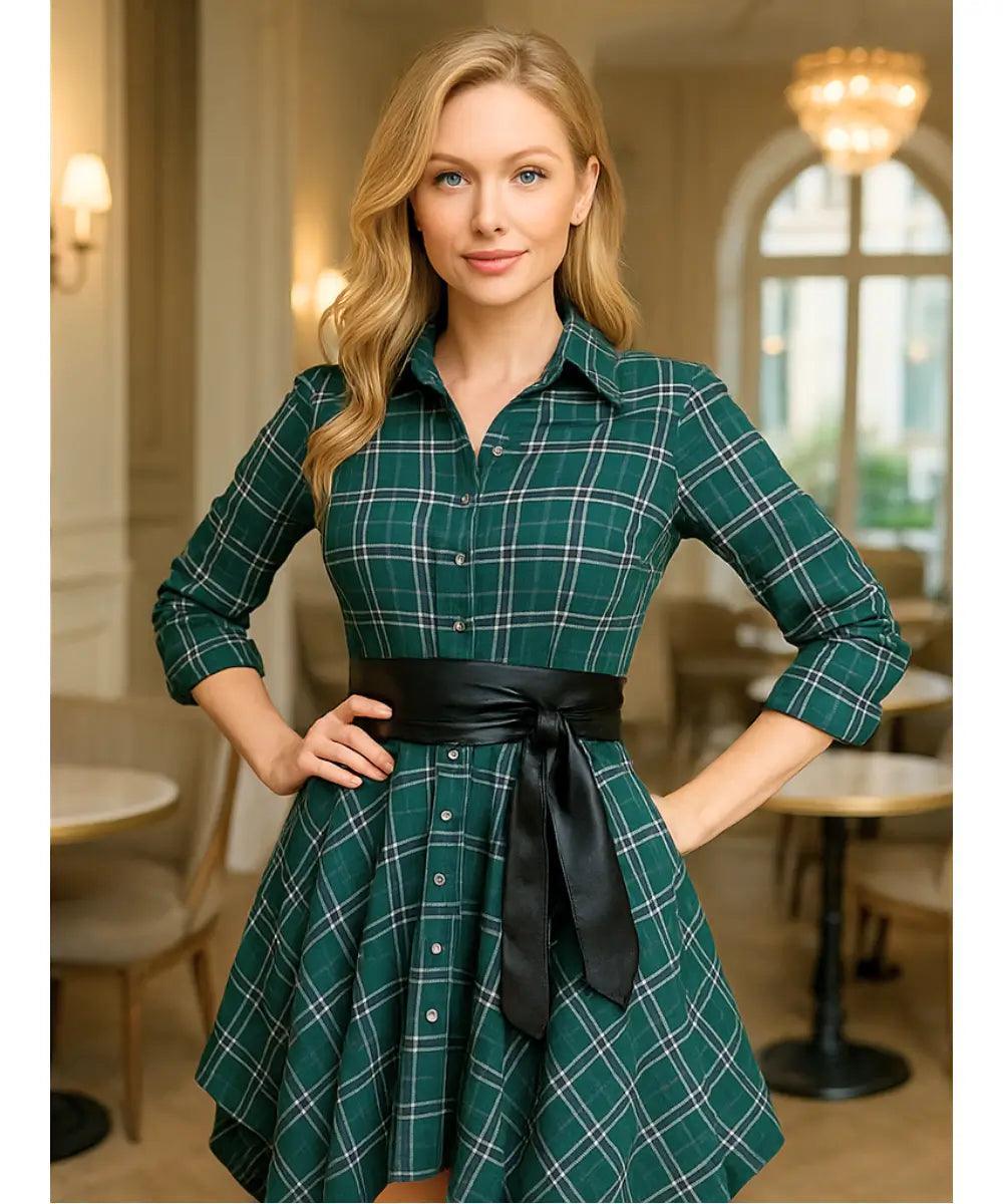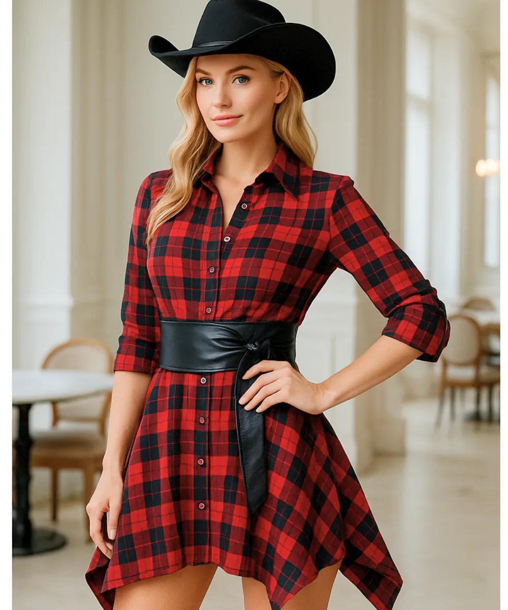Ele une o charme da estampa xadrez com uma modelagem que realça instantaneamente a cintura e valoriza o caimento.