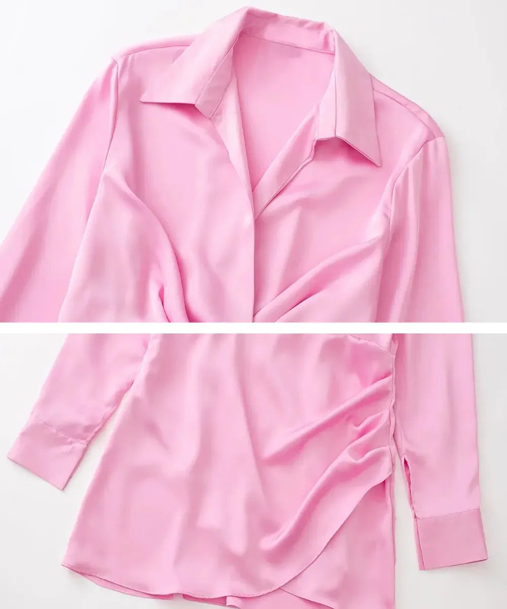 Esse é o tipo de tecido que entrega caimento impecável sem esforço. O cetim é leve, tem aquele brilho discreto que eleva o visual e deixa tudo mais elegante.