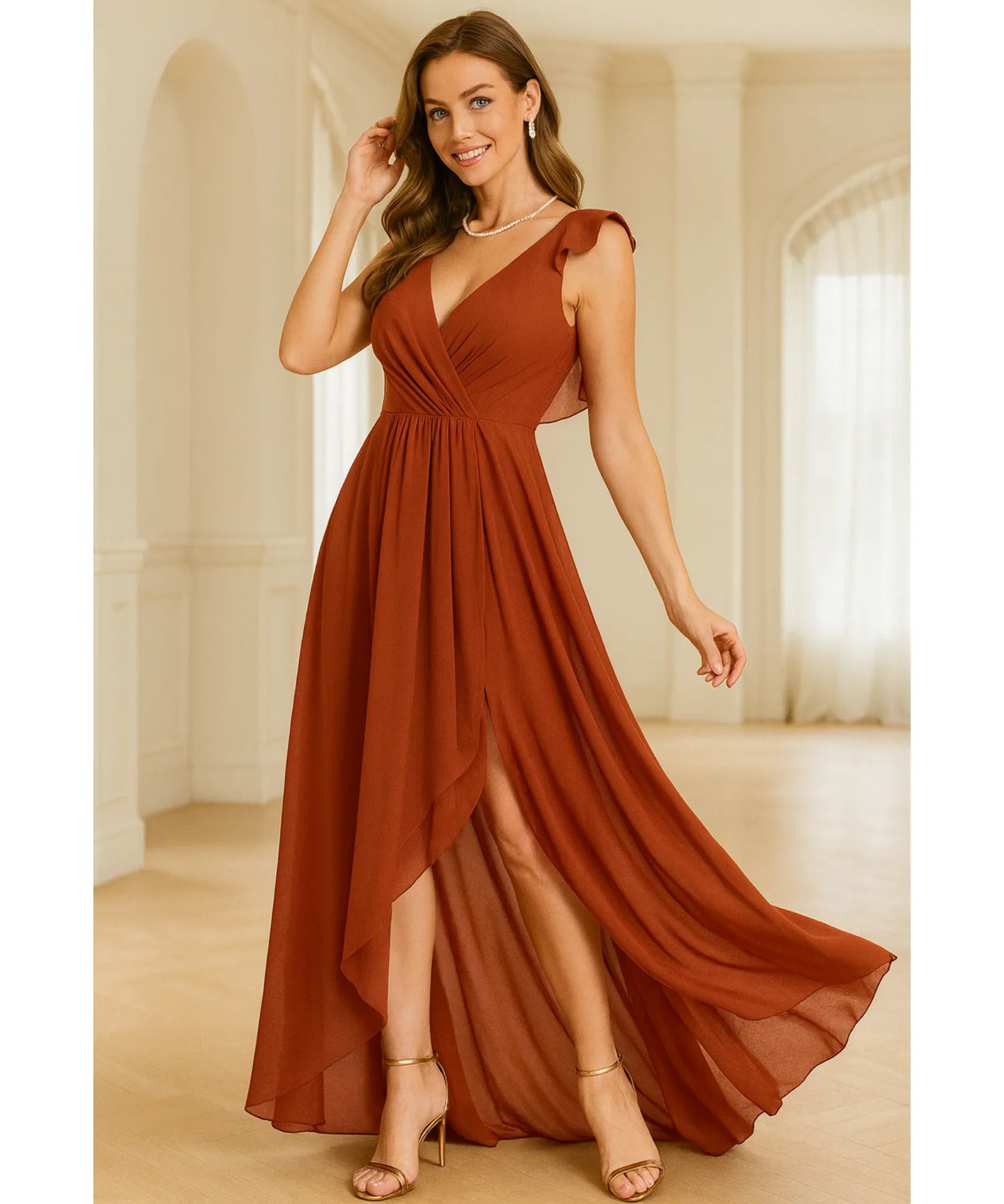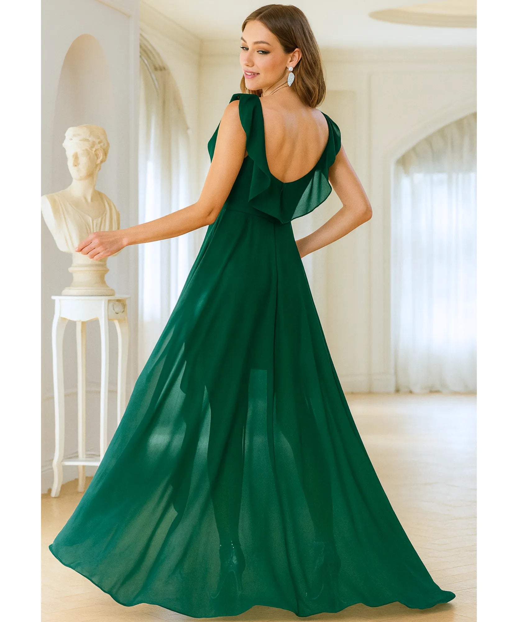 O Vestido Longo de Festa com Decote Transpassado e Babados é a peça que une elegância, estilo e conforto em um único produto.