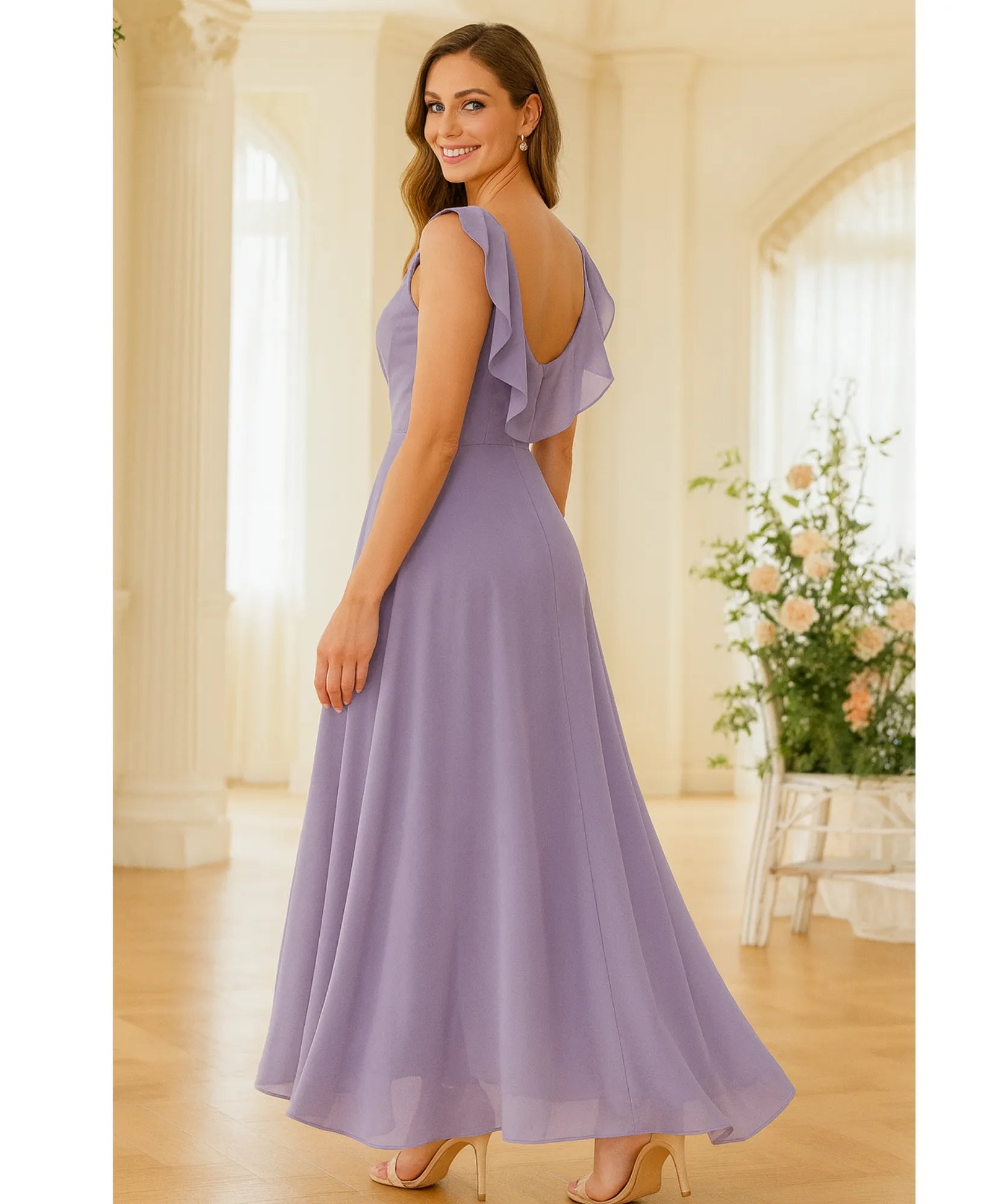 Além do visual elegante, o tecido chiffon respirável oferece leveza, permitindo que você se sinta confortável durante todo o evento.