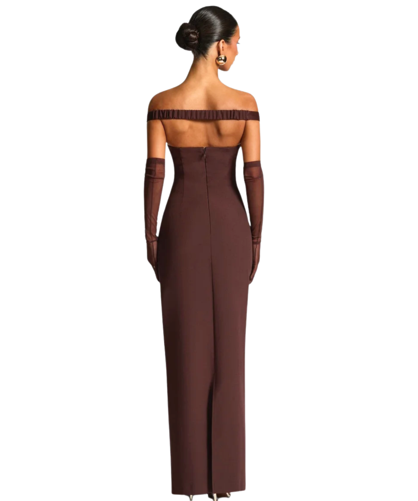Sofisticação exclusiva que transforma qualquer momento - Vestido longo festa ombro a ombro