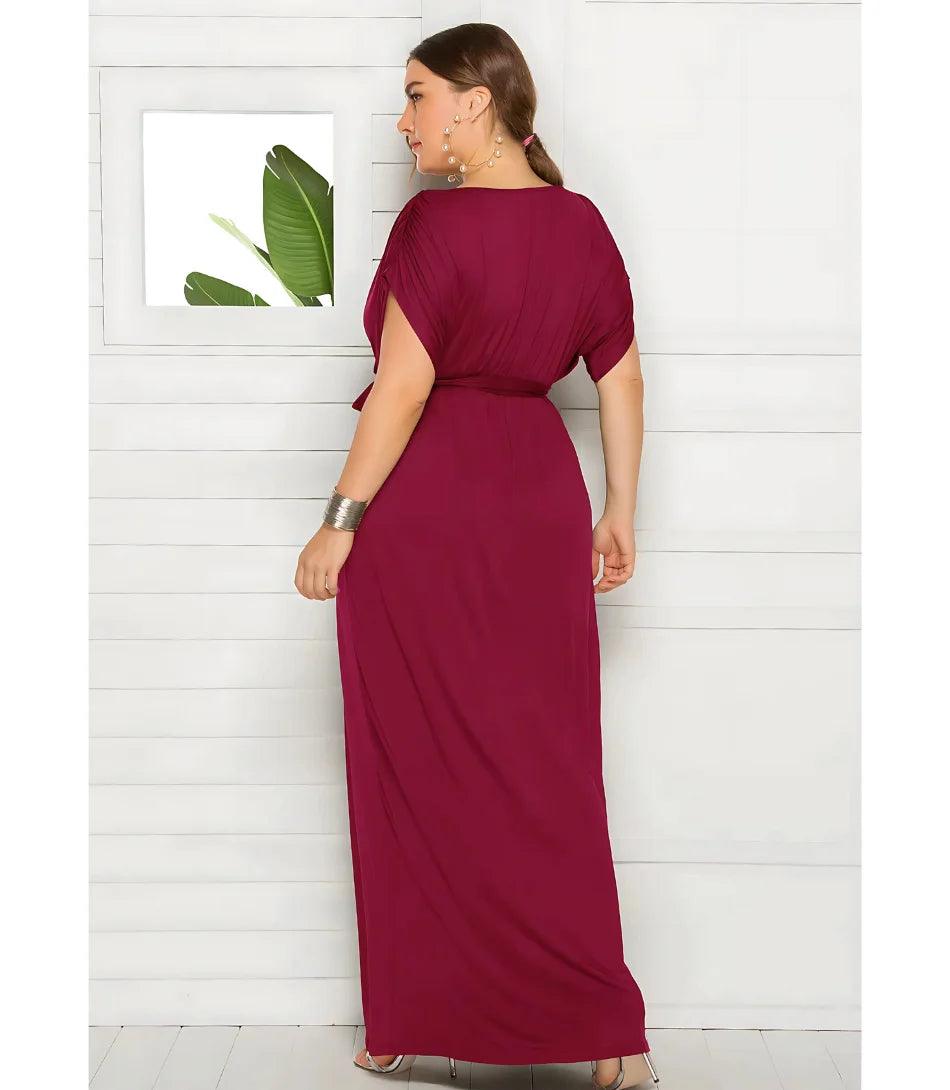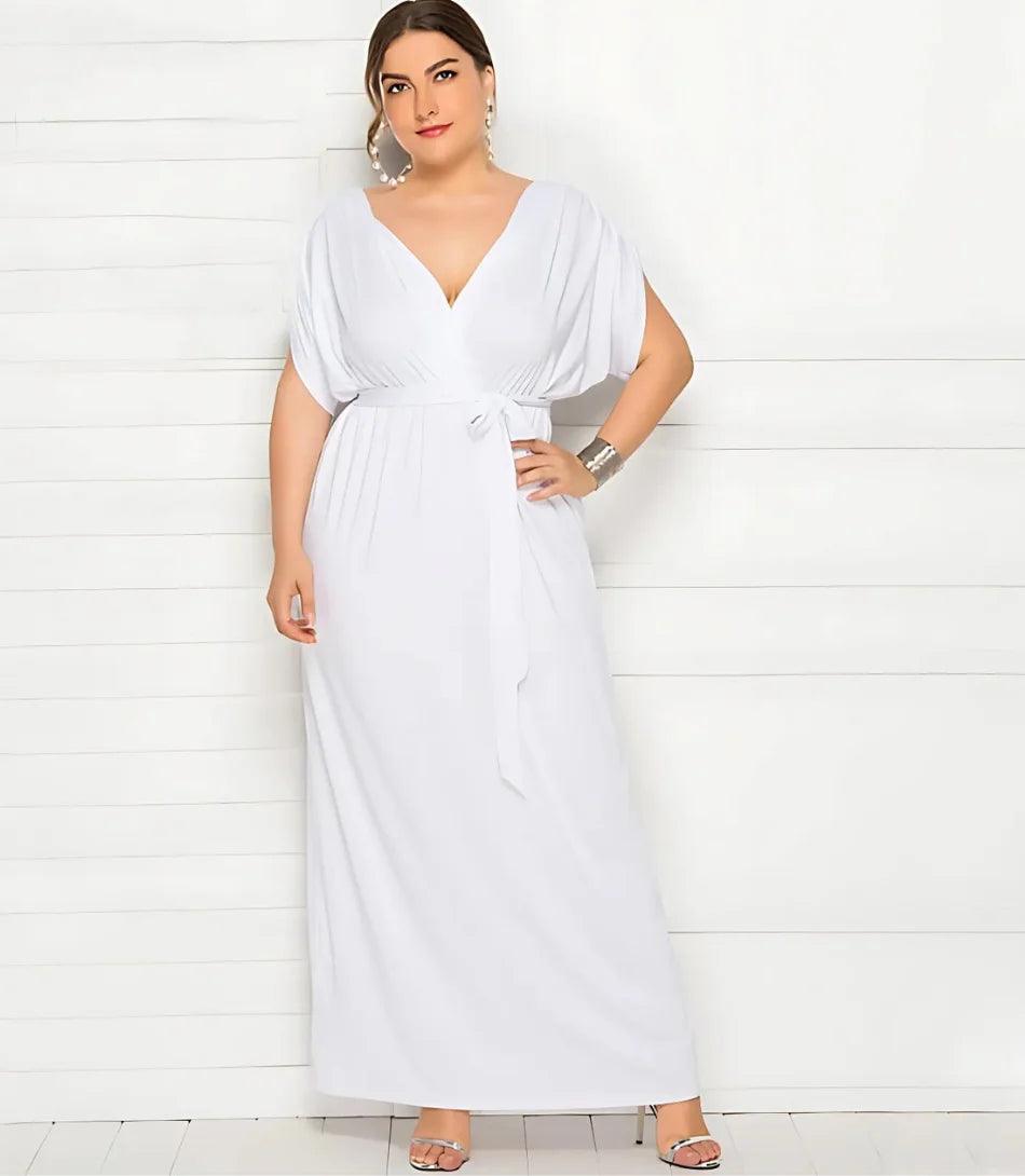 Este vestido longo plus size elegante une sofisticação, conforto e caimento impecável, destacando suas curvas de forma deslumbrante.